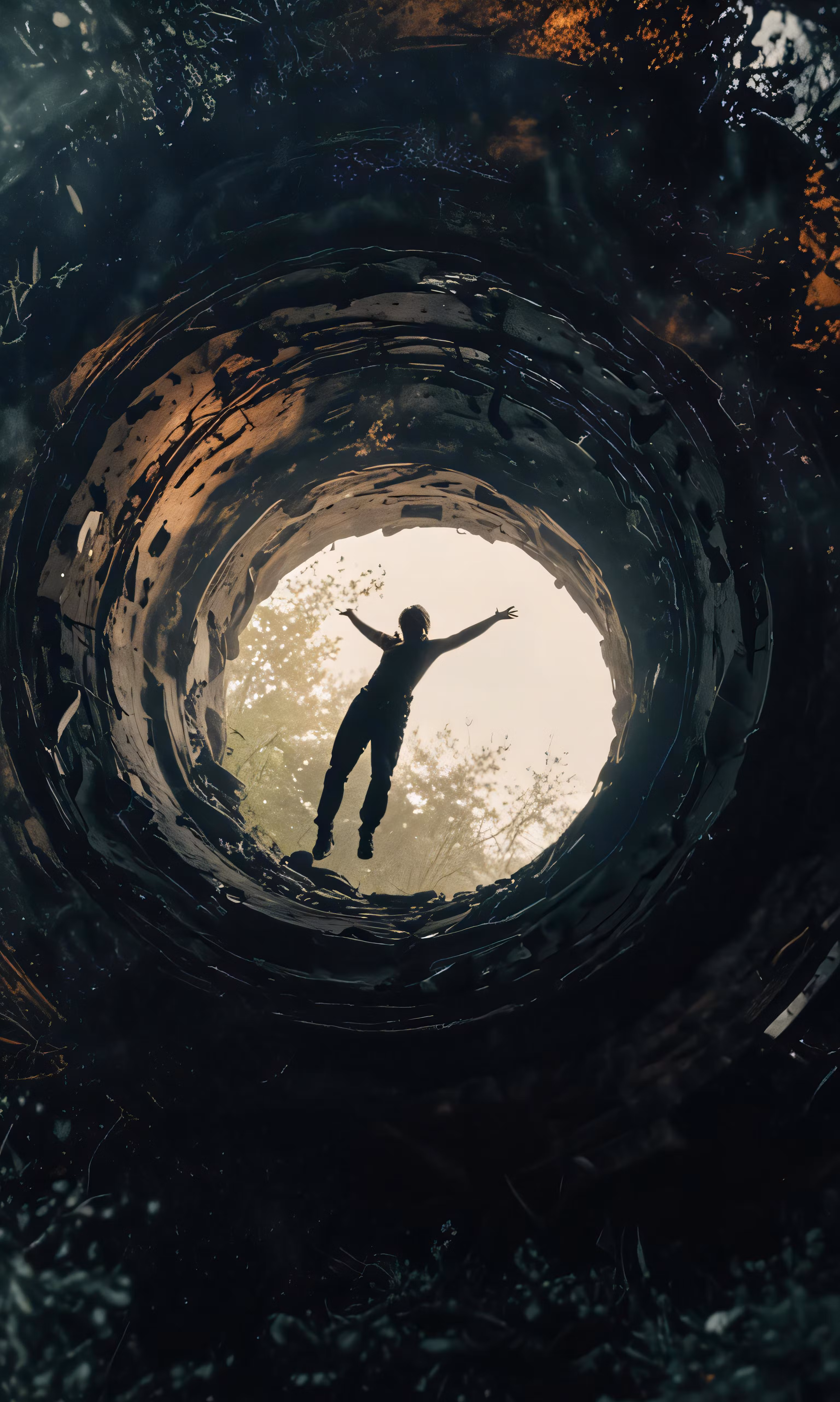 High resolution picture, free to use, someone is standing inside of a water filled tunnel