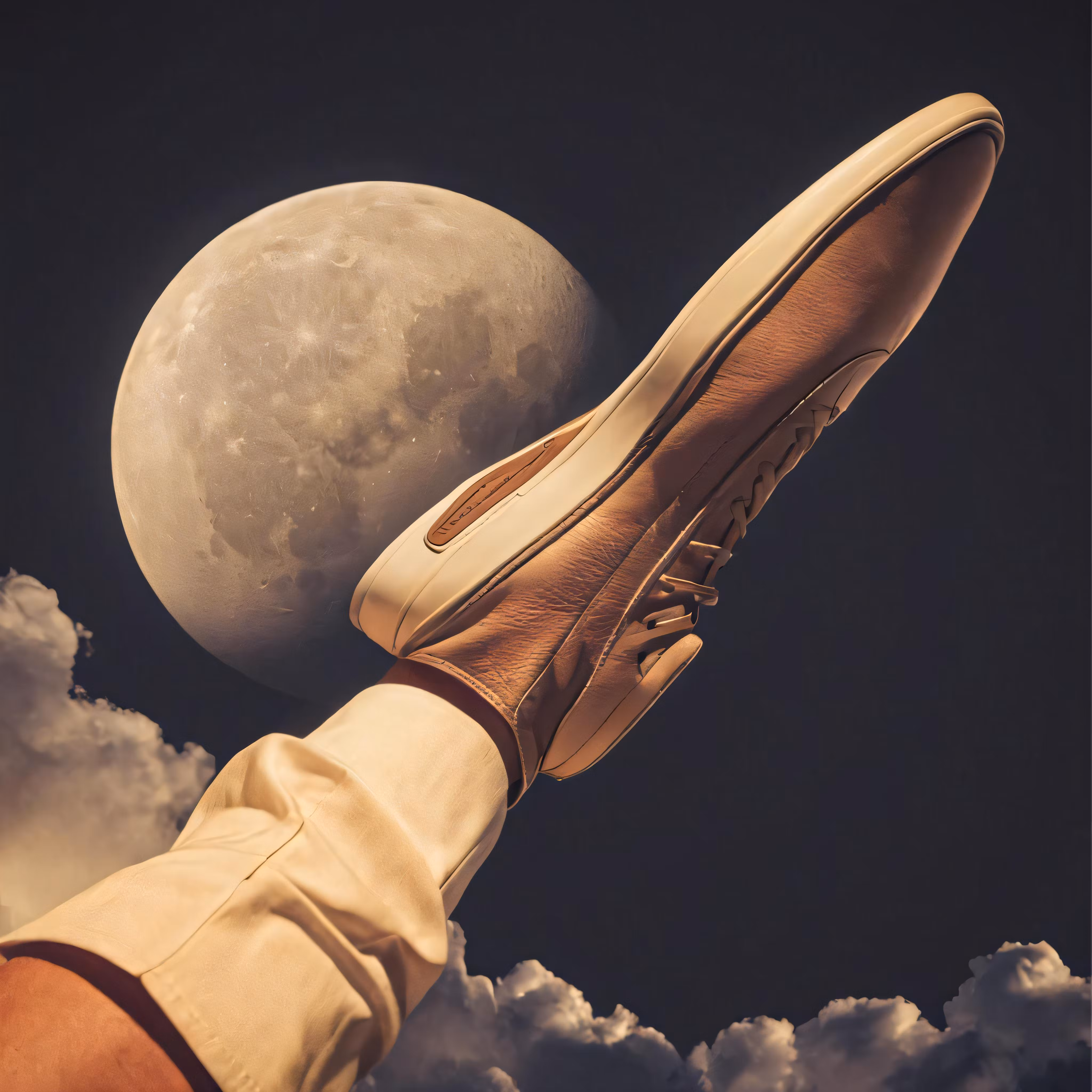 High resolution picture, free to use, someone standing on top of a pair of tan shoes