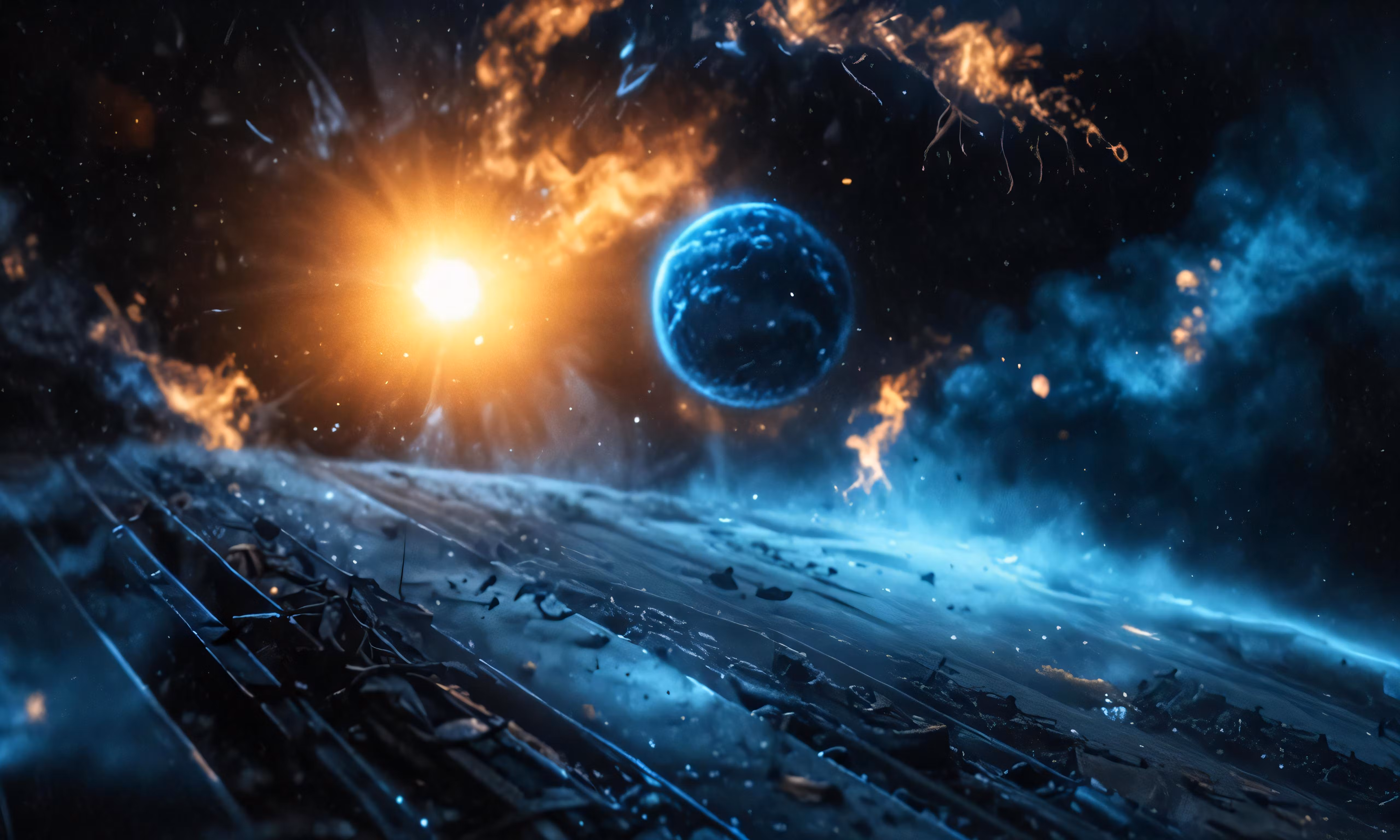 High resolution picture, free to use, the alien planet is in space surrounded by clouds
