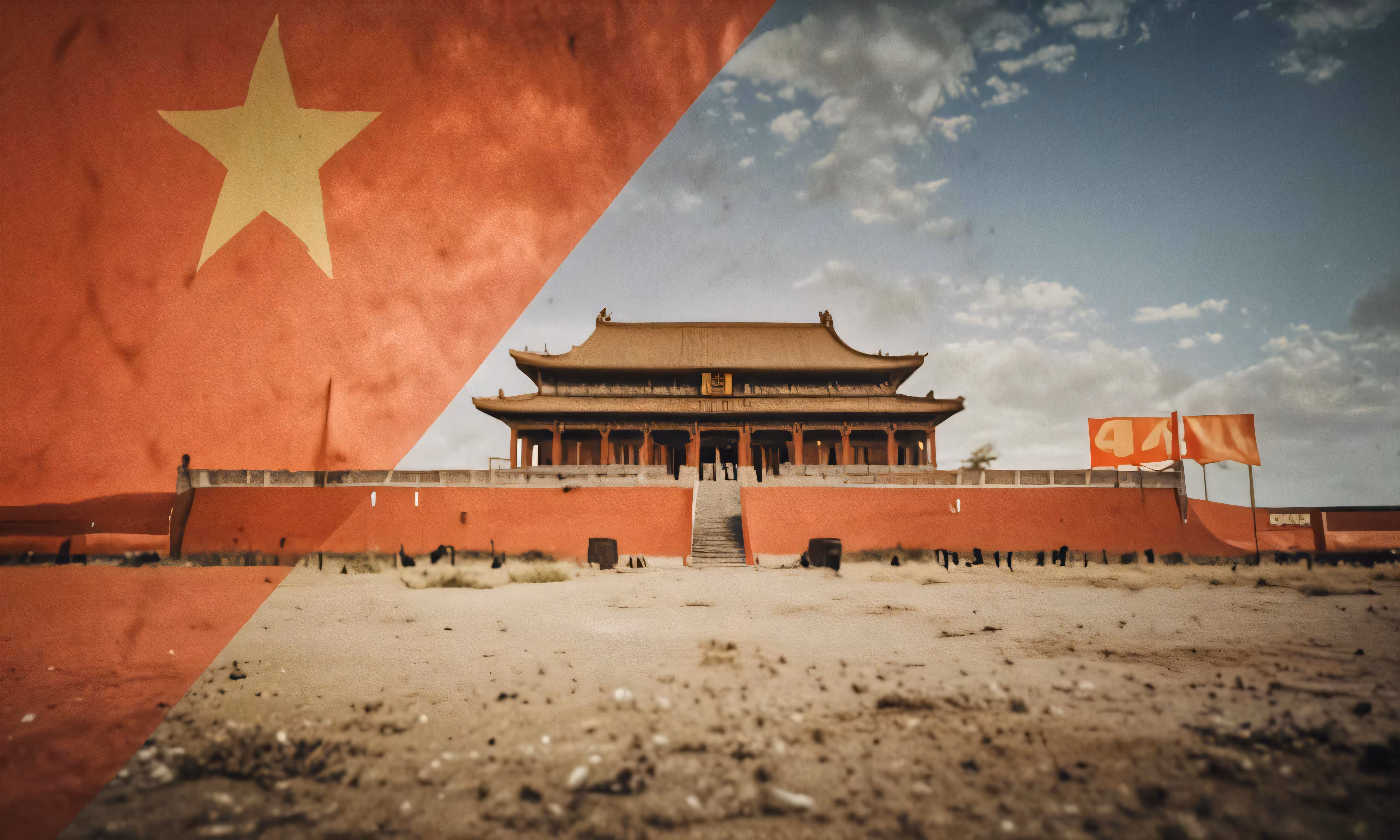 High resolution picture, free to use, the asian flag in front of an old building