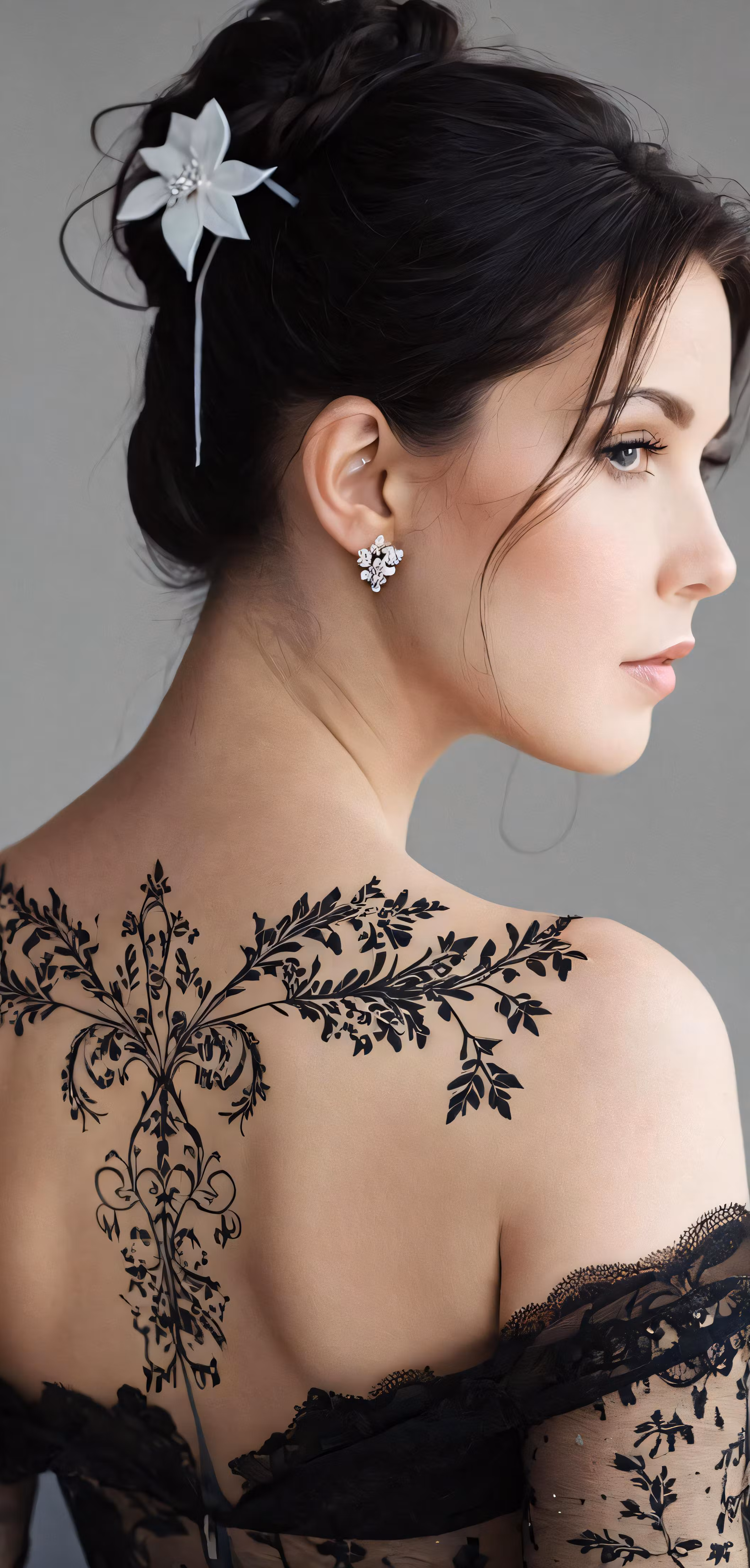 High resolution picture, free to use, the back of a woman with tattoos on her back