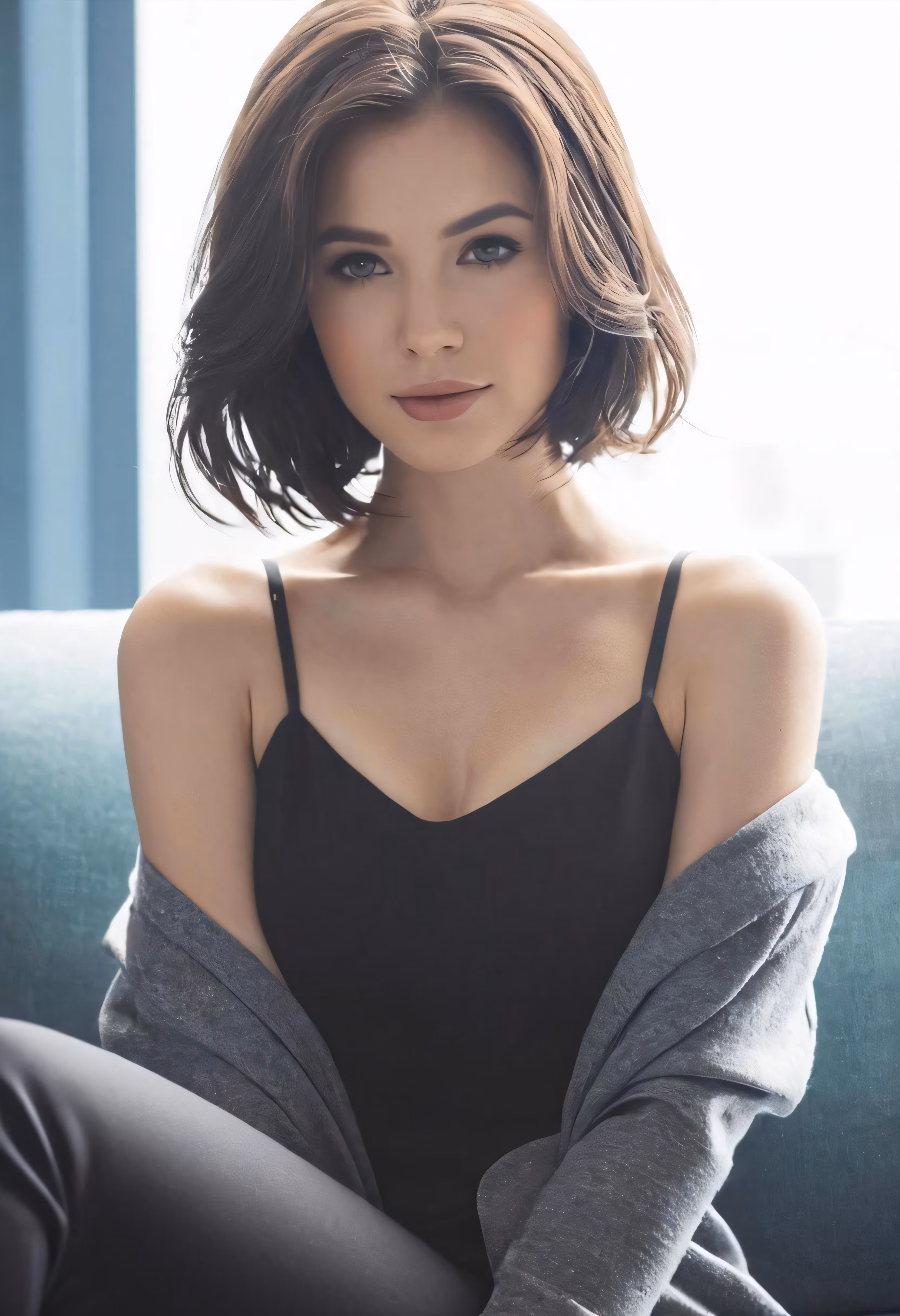 High resolution picture, free to use, the beautiful asian woman is posing on a couch
