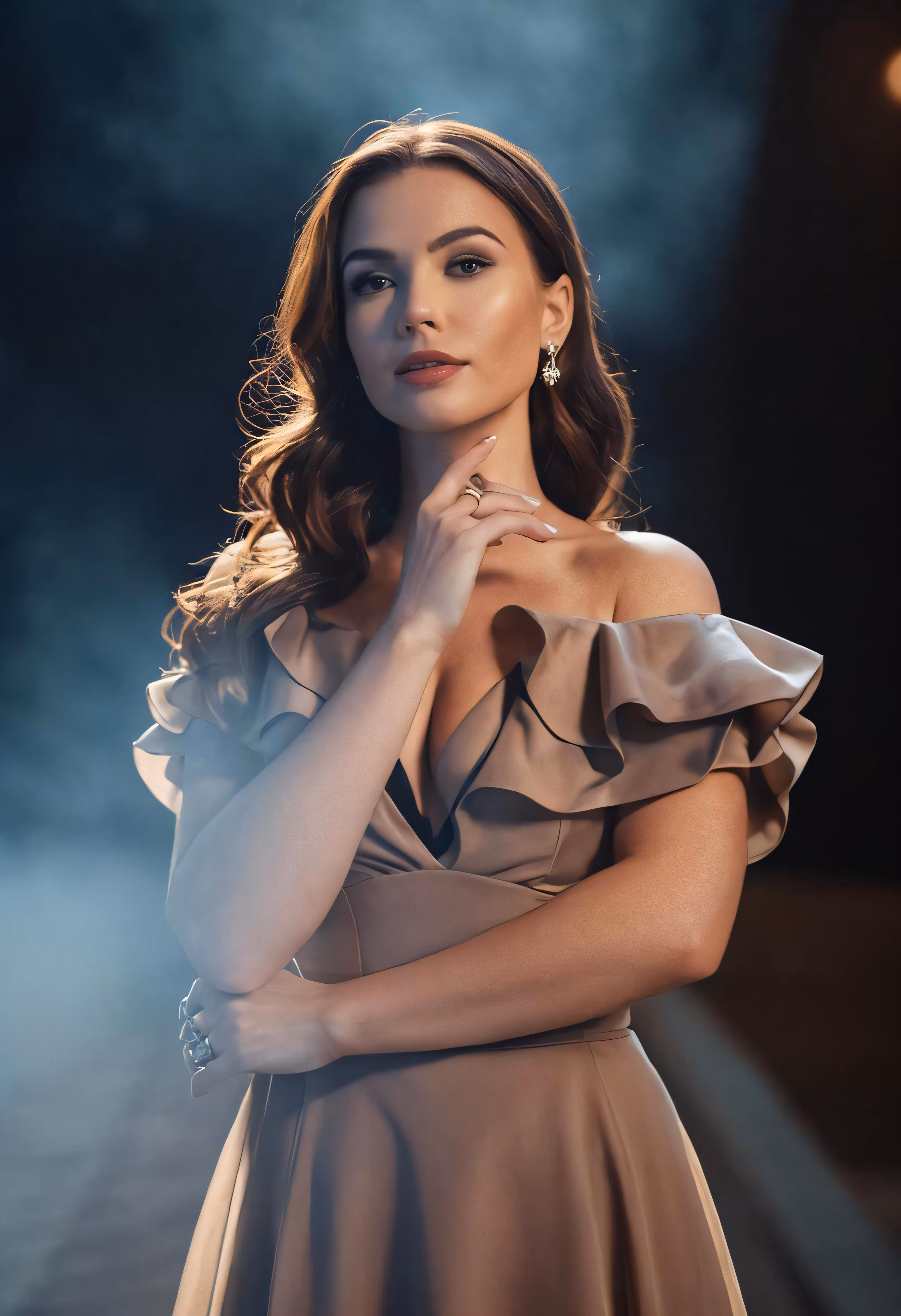 High resolution picture, free to use, the beautiful woman in a tan dress is posing
