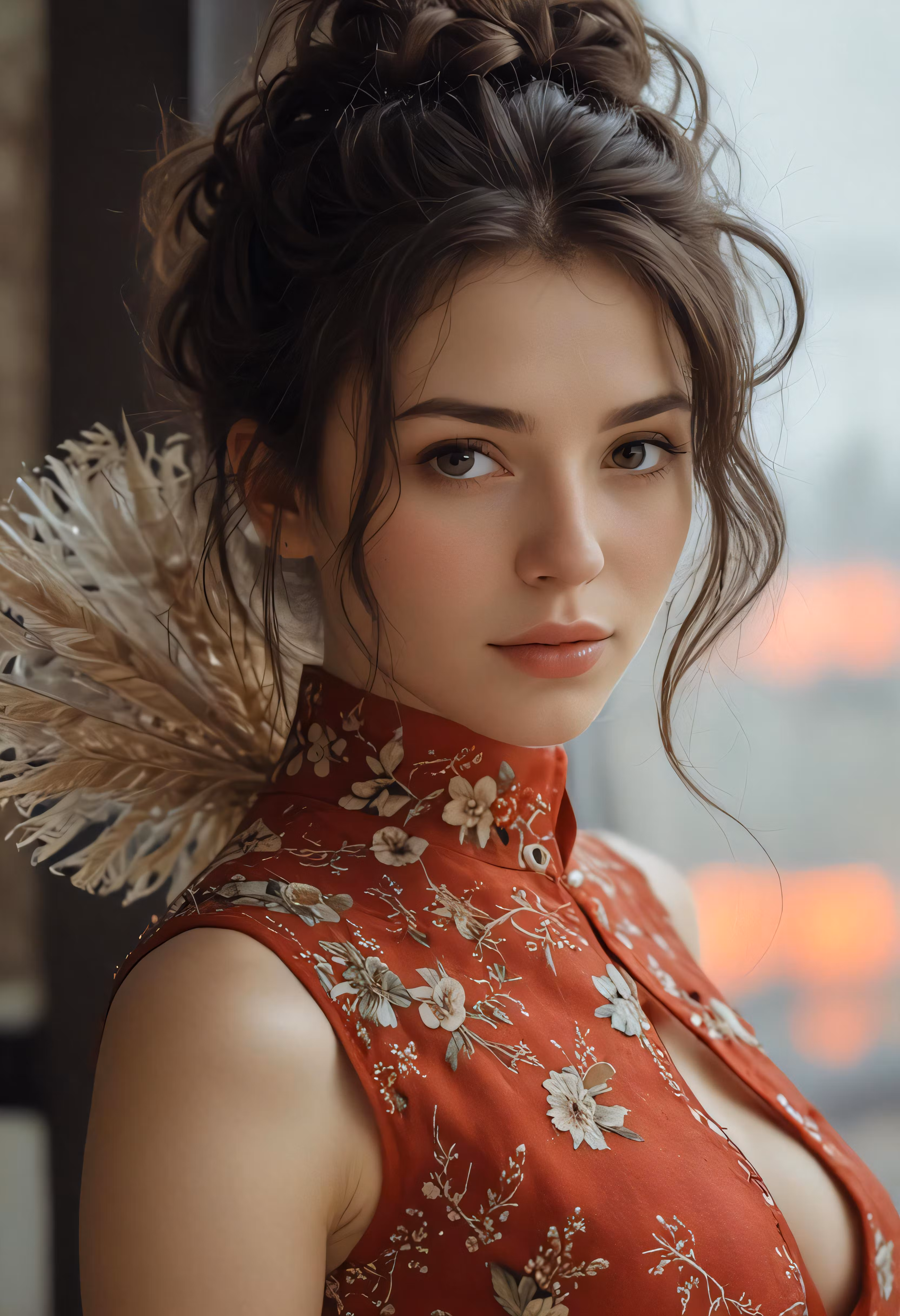 High resolution picture, free to use, the beautiful young woman with large breast in a red dress
