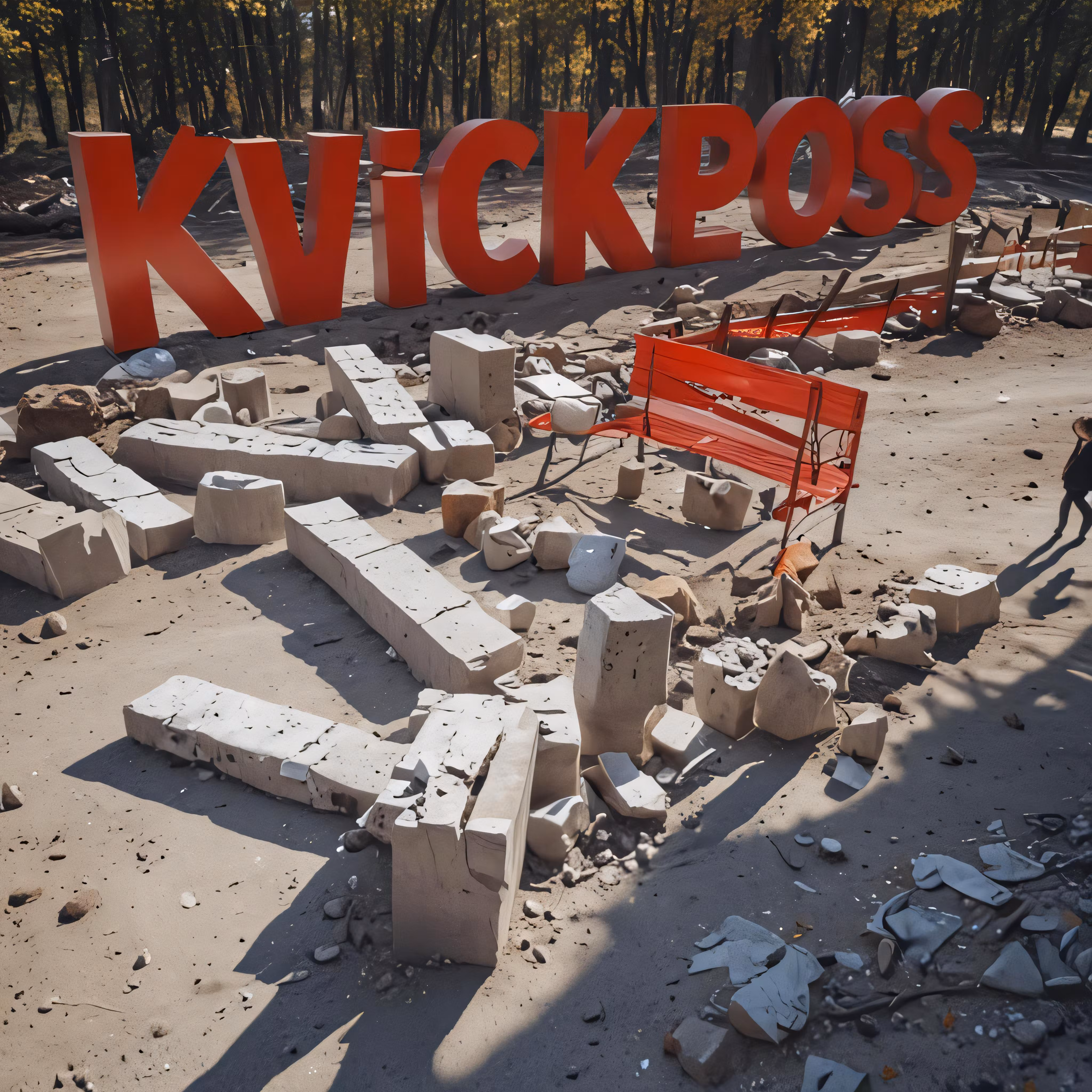 High resolution picture, free to use, the bench is surrounded by rubble in this abandoned parking lot