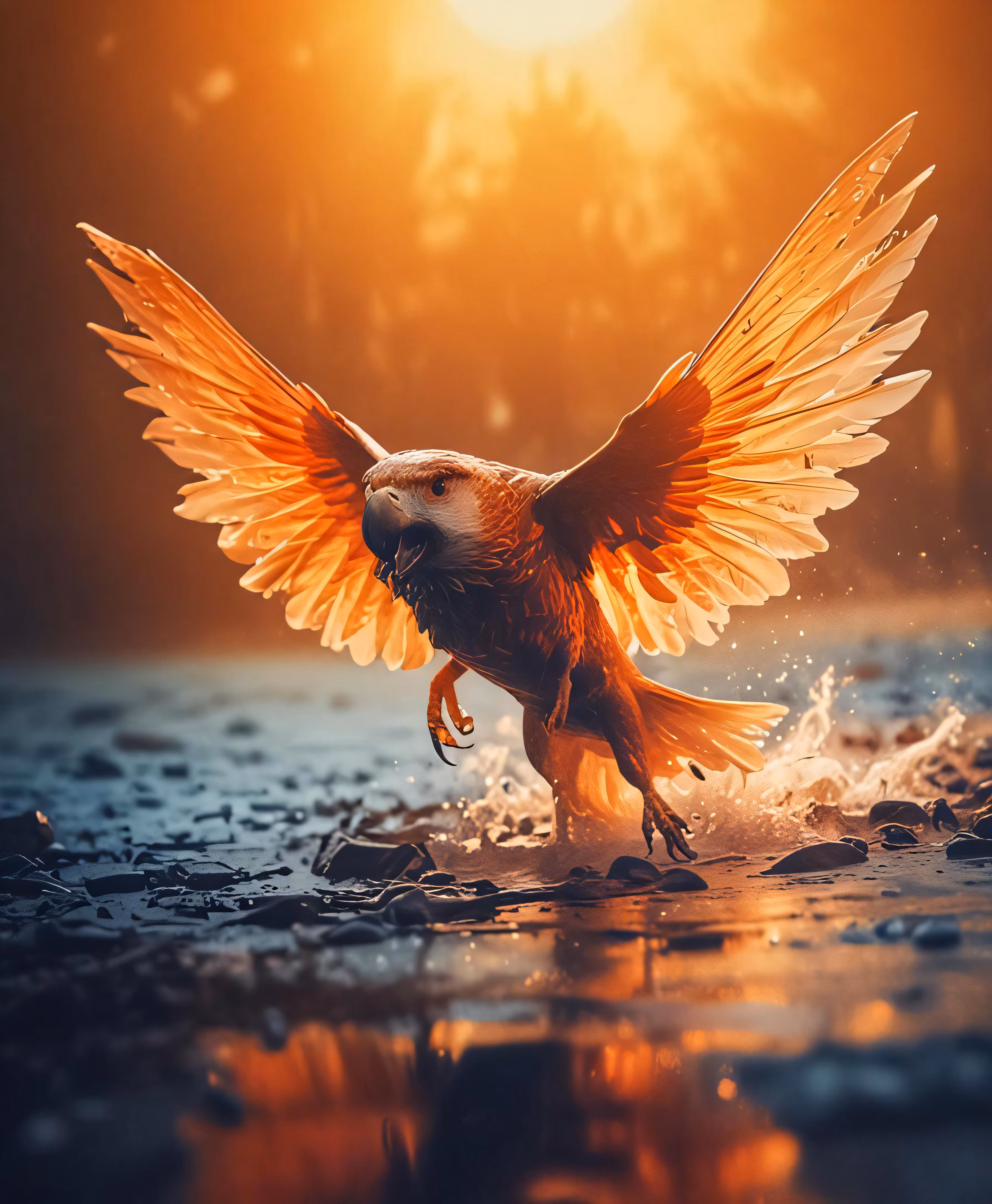 High resolution picture, free to use, the bird with its wings spread is swimming