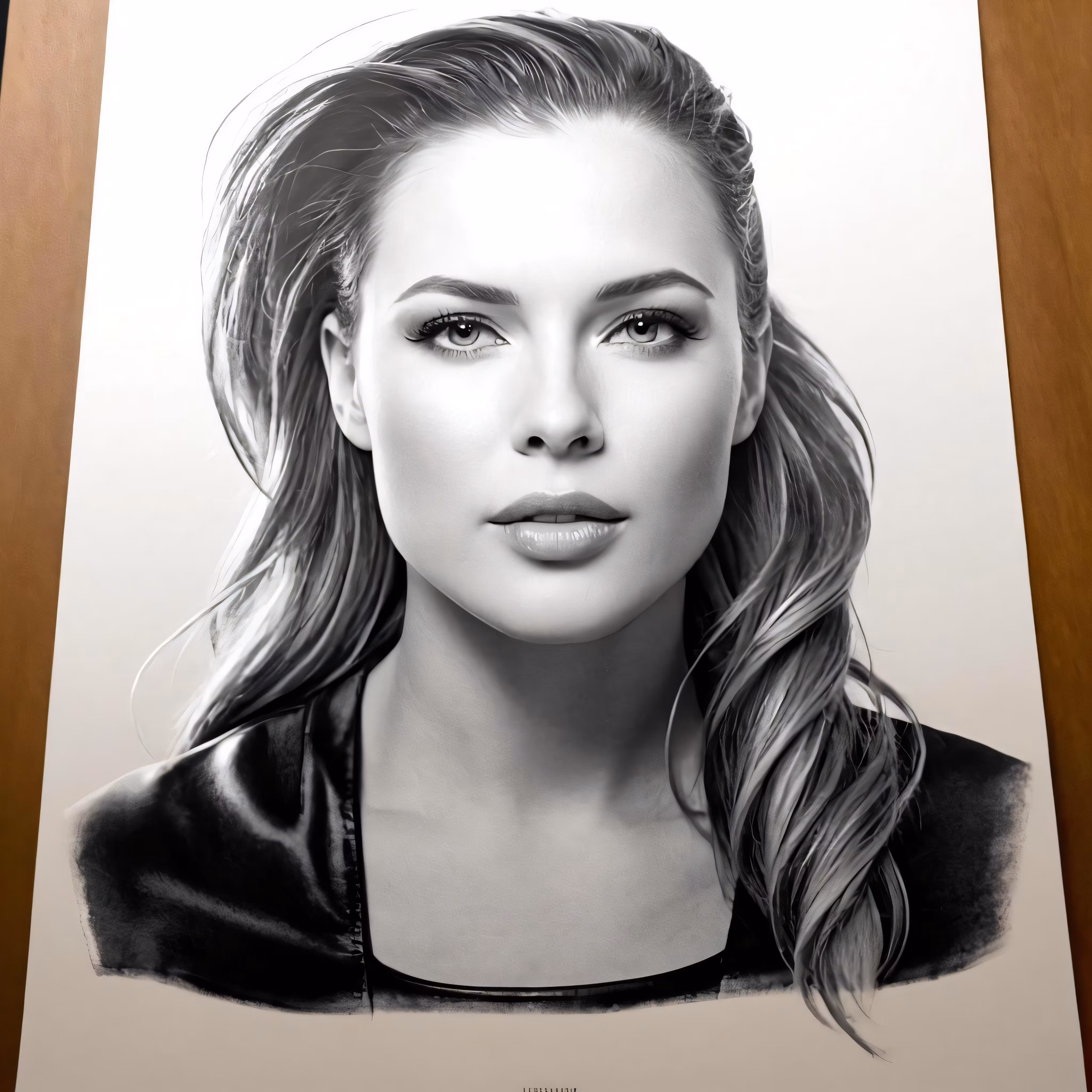High resolution picture, free to use, the black and white drawing of a woman with long hair