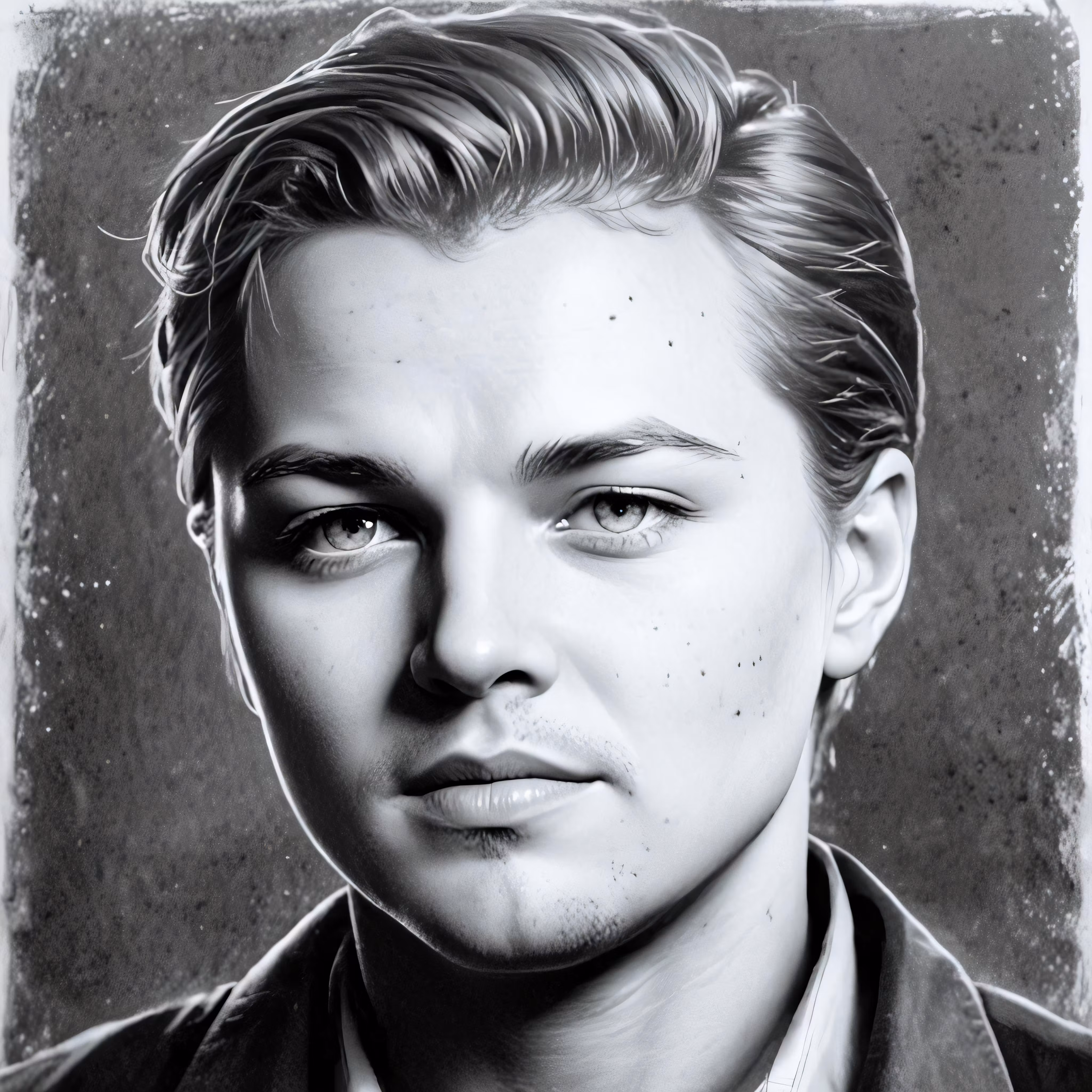 High resolution picture, free to use, the black and white photo shows the face of the young man