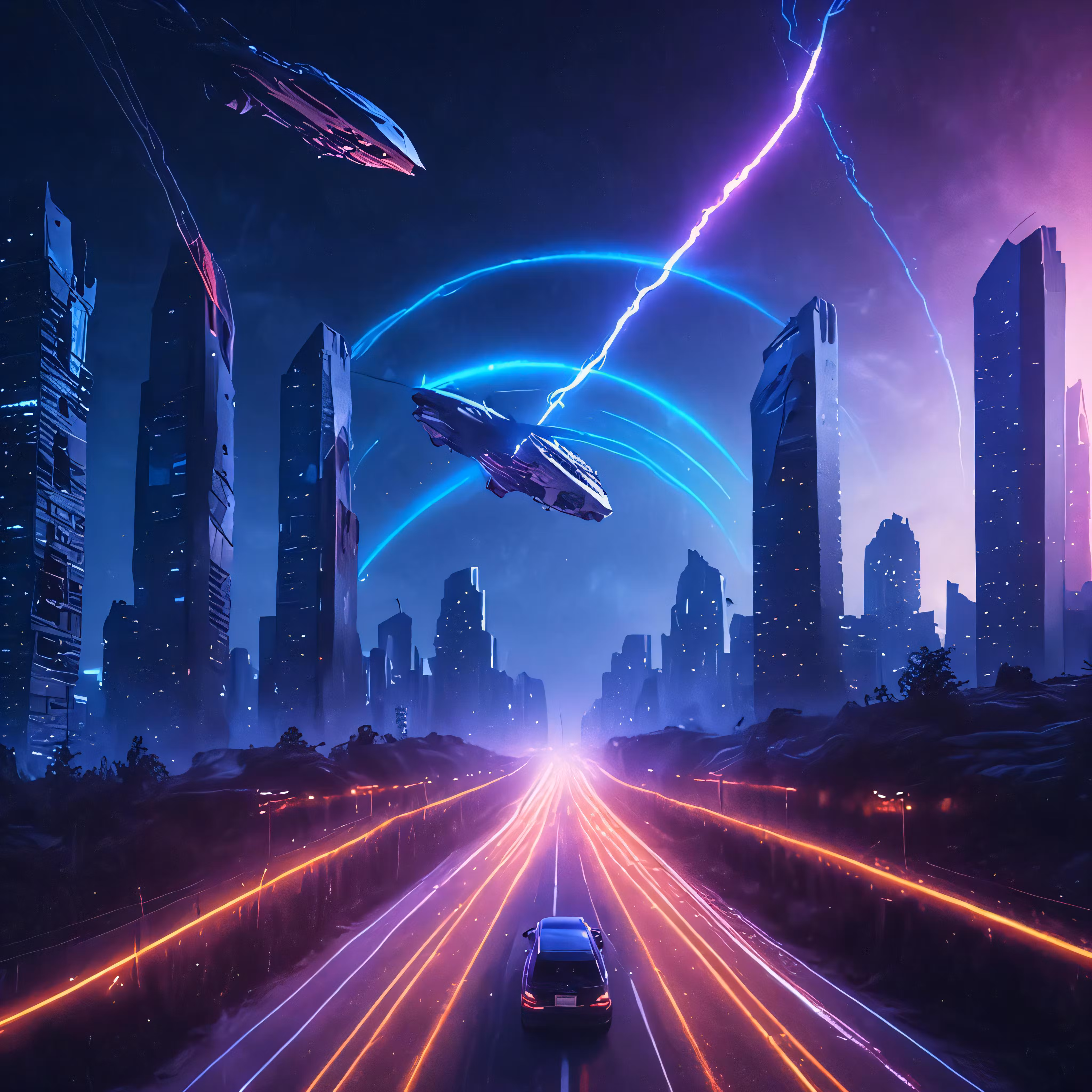 High resolution picture, free to use, the cars and trains are traveling through a futuristic city