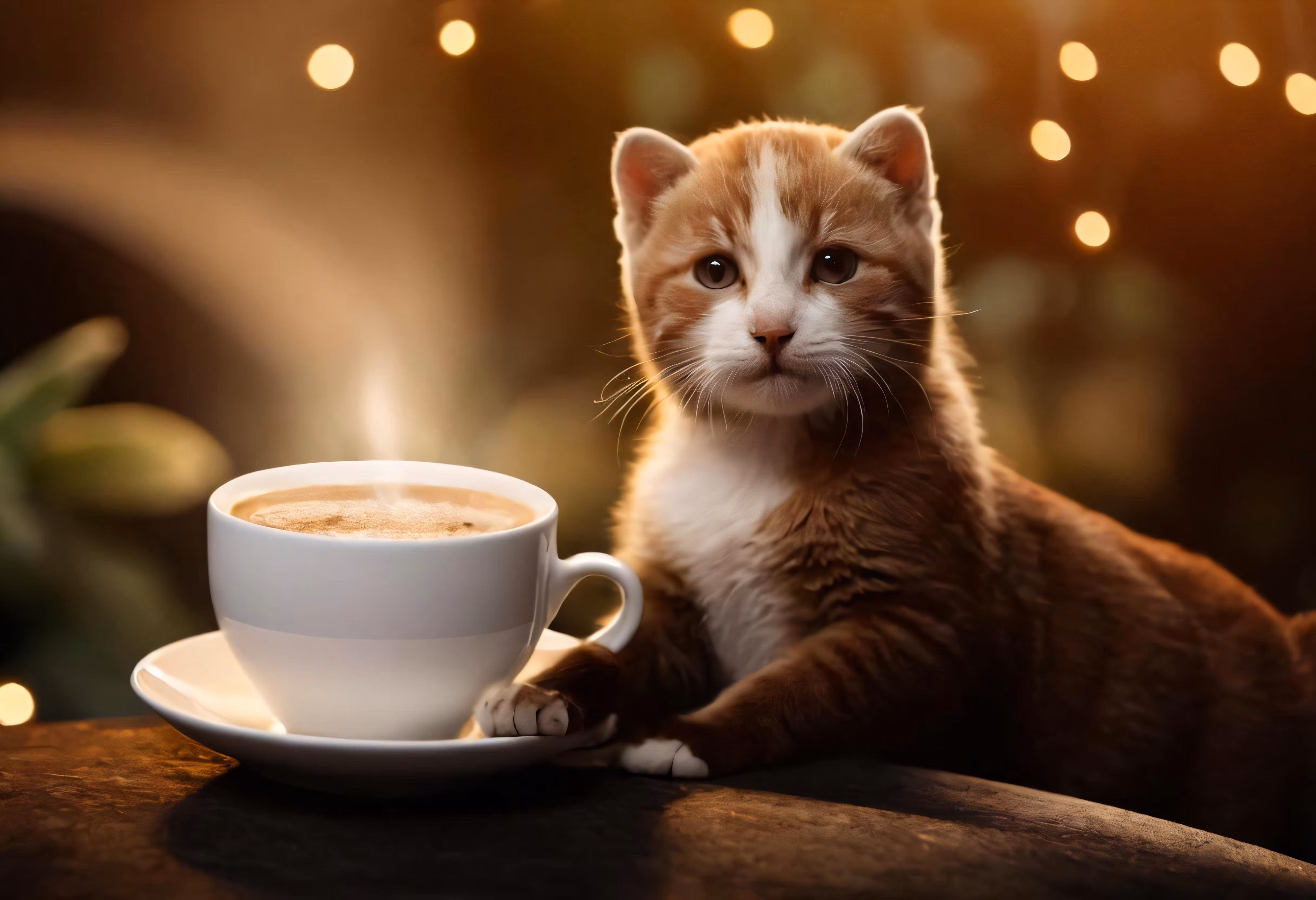 High resolution picture, free to use, the cat is sitting with his paw on a coffee cup
