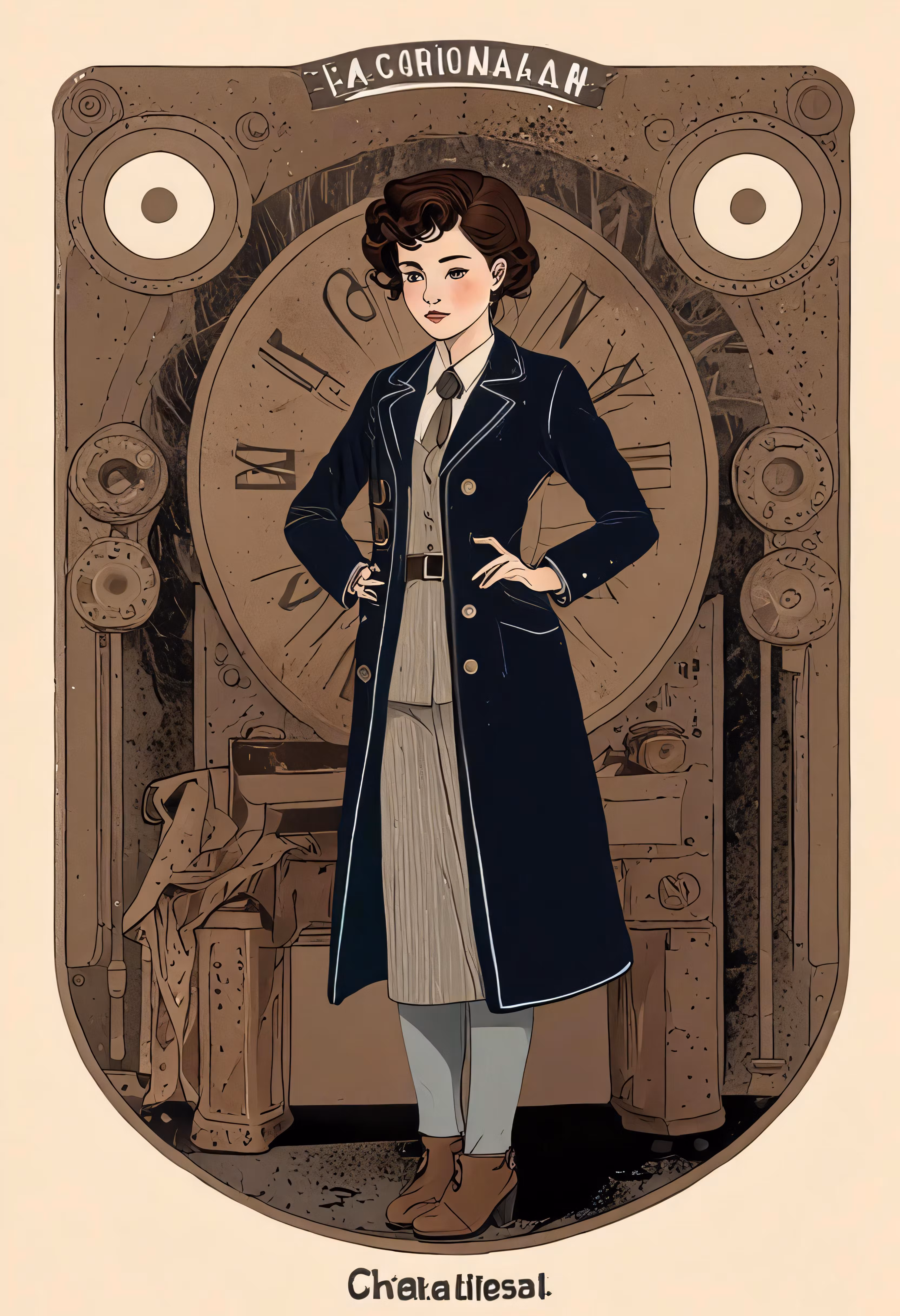 High resolution picture, free to use, the character from the tv series, cluetown is standing in front of a clock