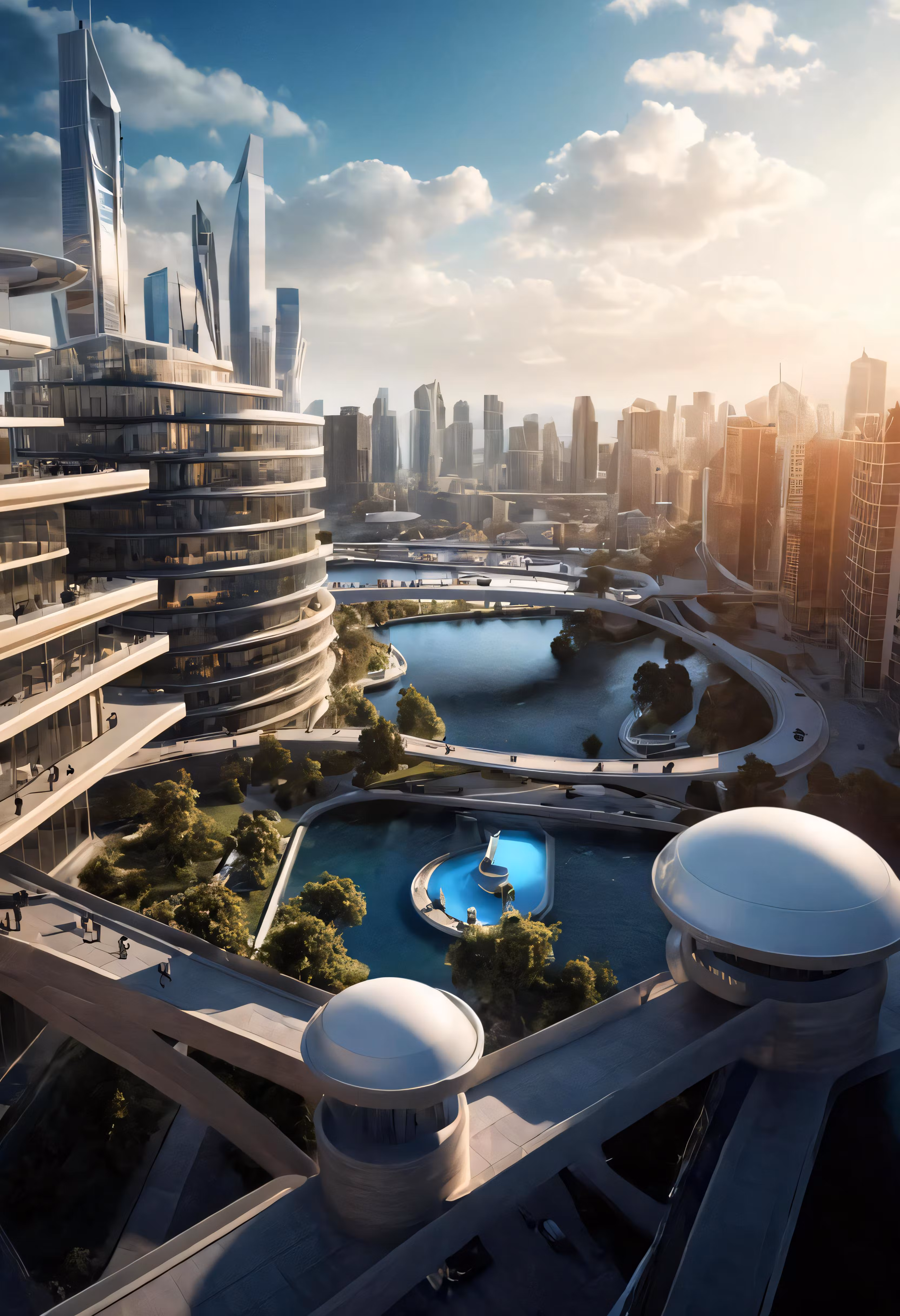 High resolution picture, free to use, the cityscape is surrounded by water and large buildings