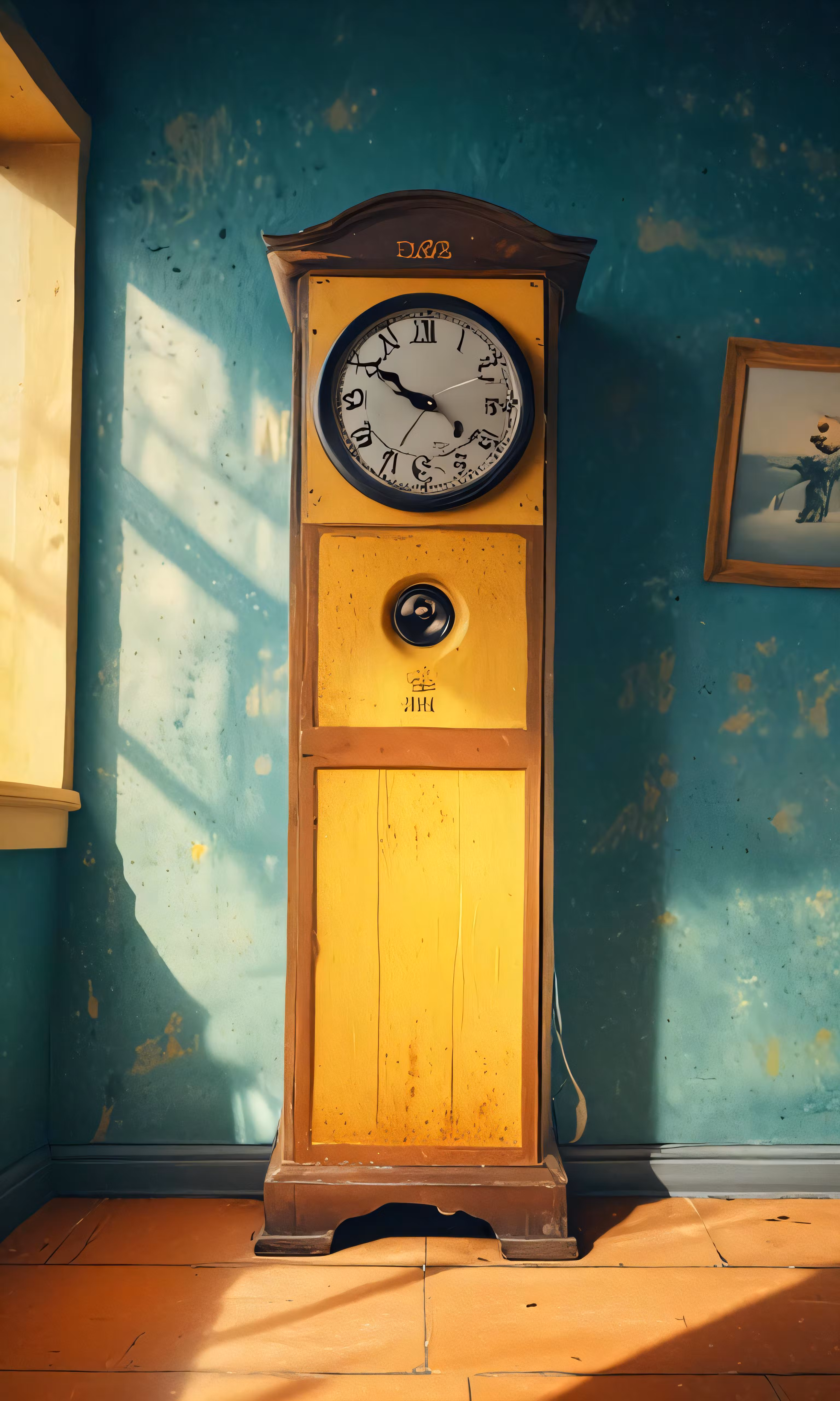 High resolution picture, free to use, the clock is next to a painting of a woman and man