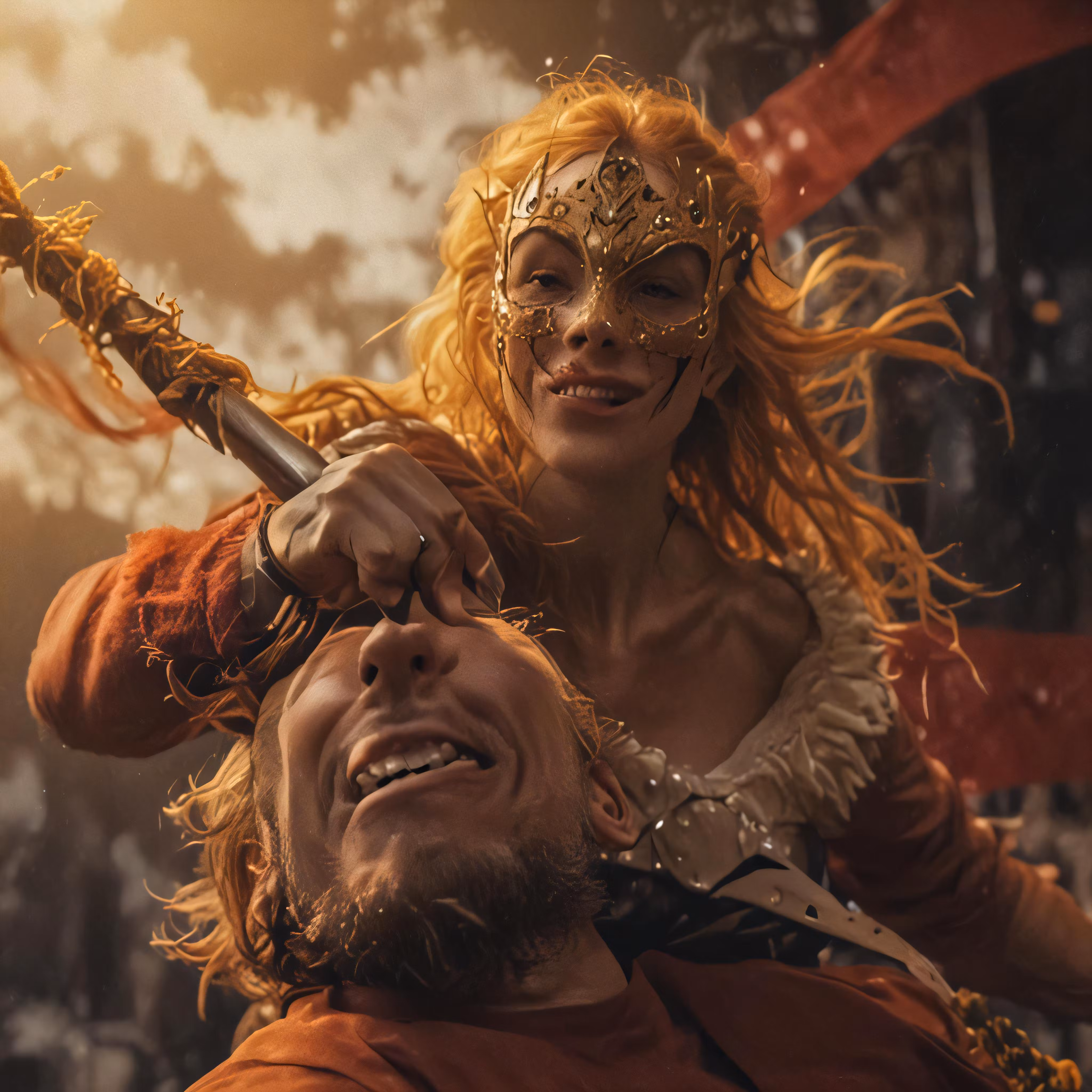 High resolution picture, free to use, the couple is all in costume on stage