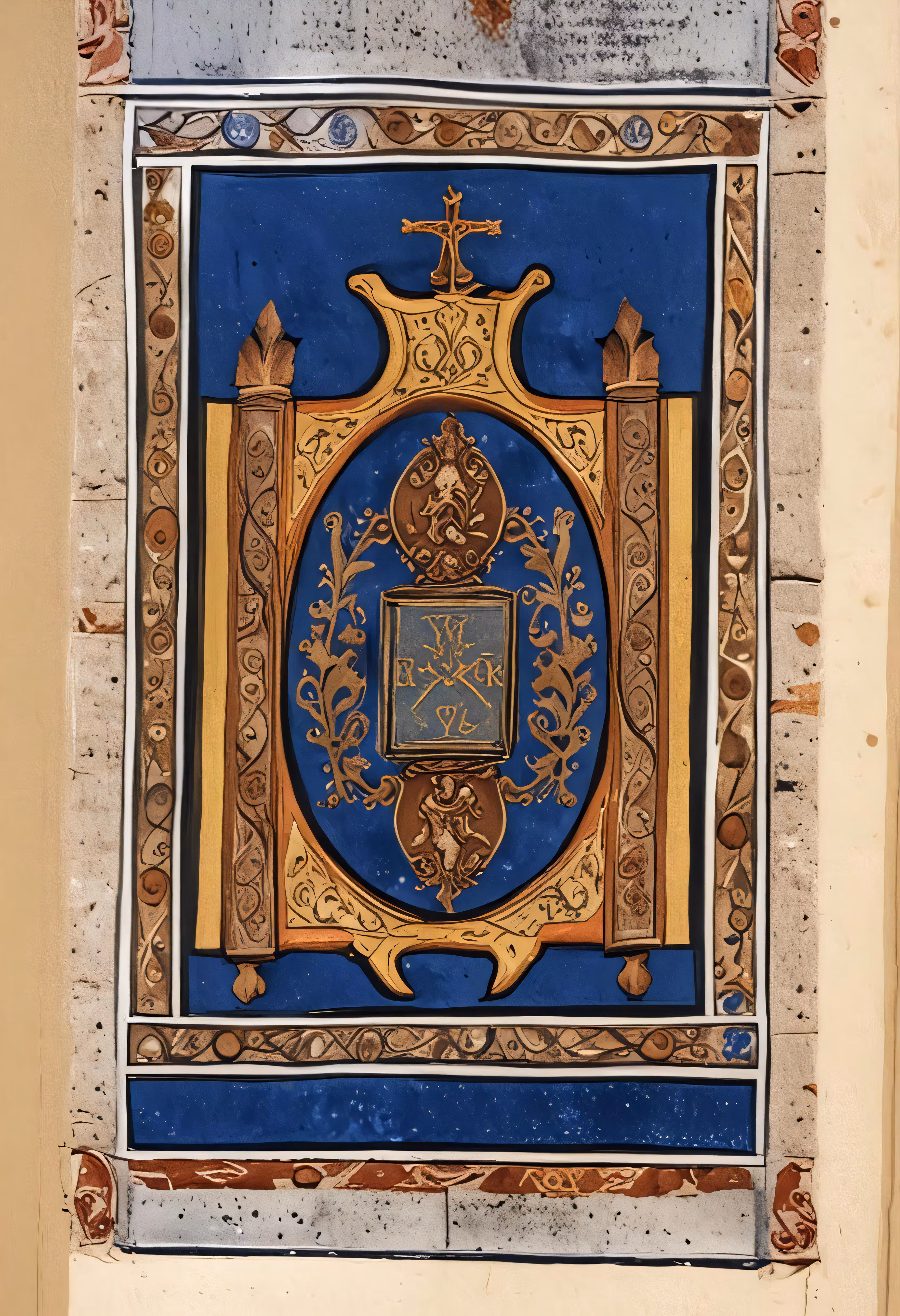 High resolution picture, free to use, the cover of the book is painted on to a stone wall