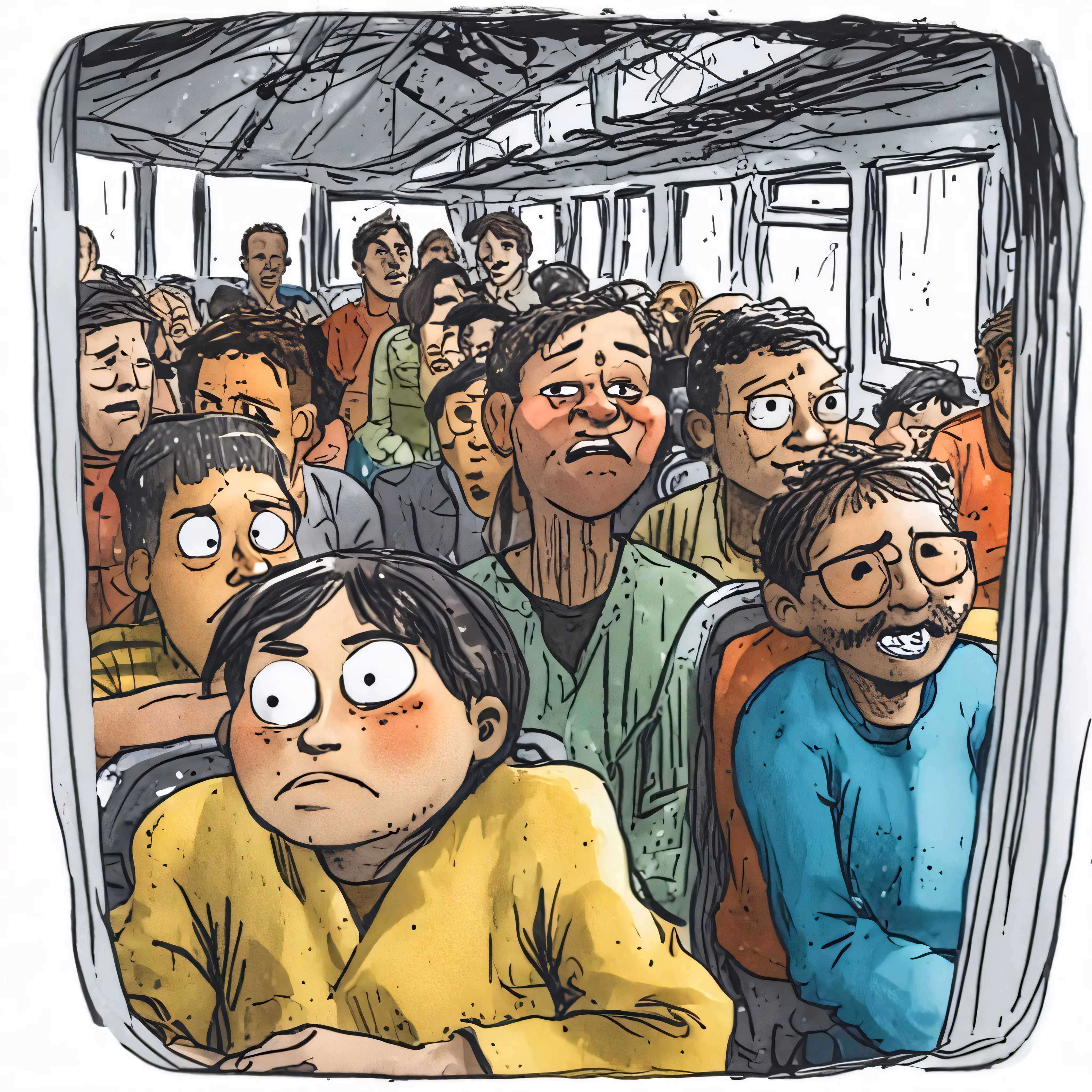 High resolution picture, free to use, the crowded subway car is depicted with an over head image