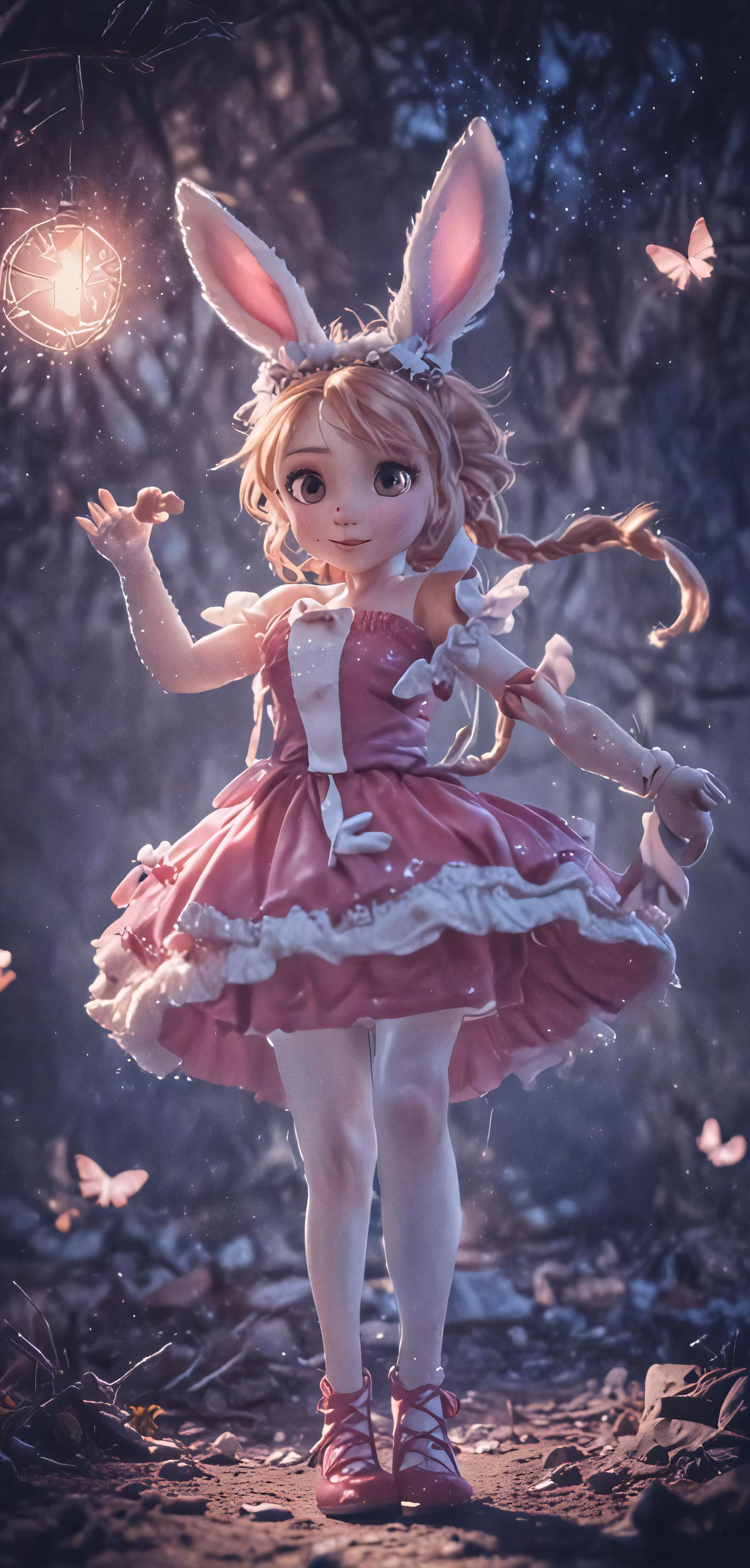 High resolution picture, free to use, the cute little girl in bunny costume is flying her toy