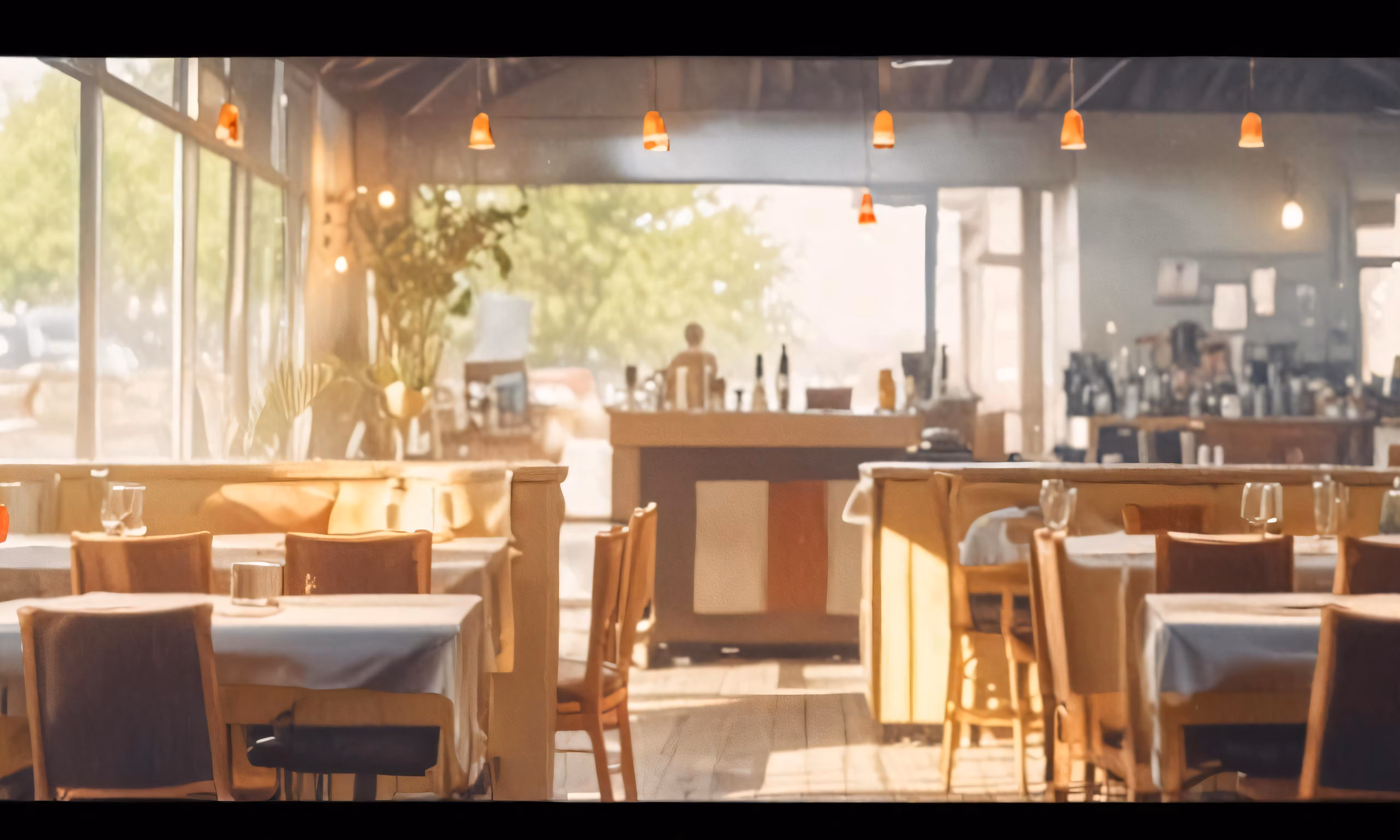 High resolution picture, free to use, the dining room at a restaurant is empty and ready for patrons