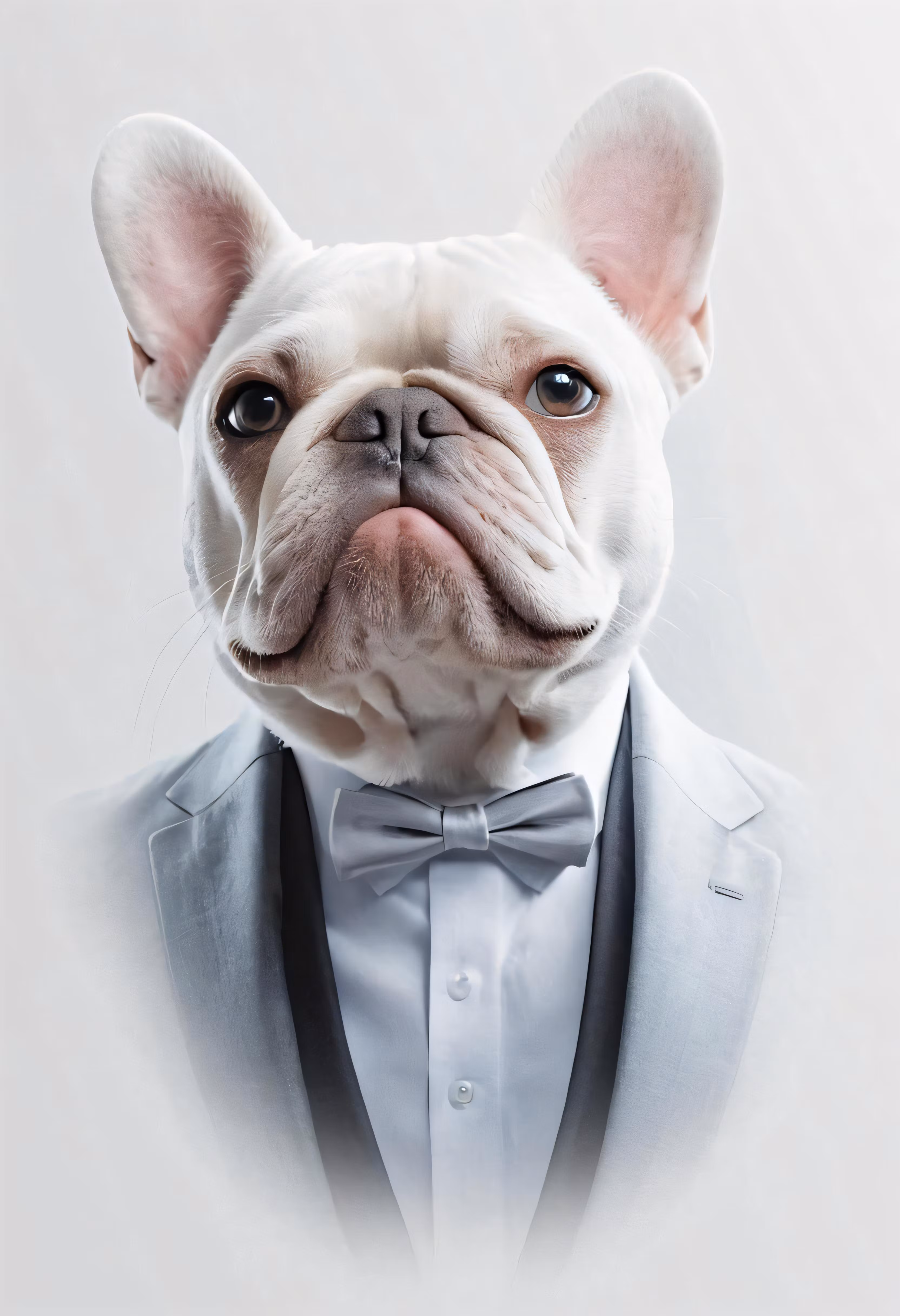 High resolution picture, free to use, the dog is dressed up in his tuxedo
