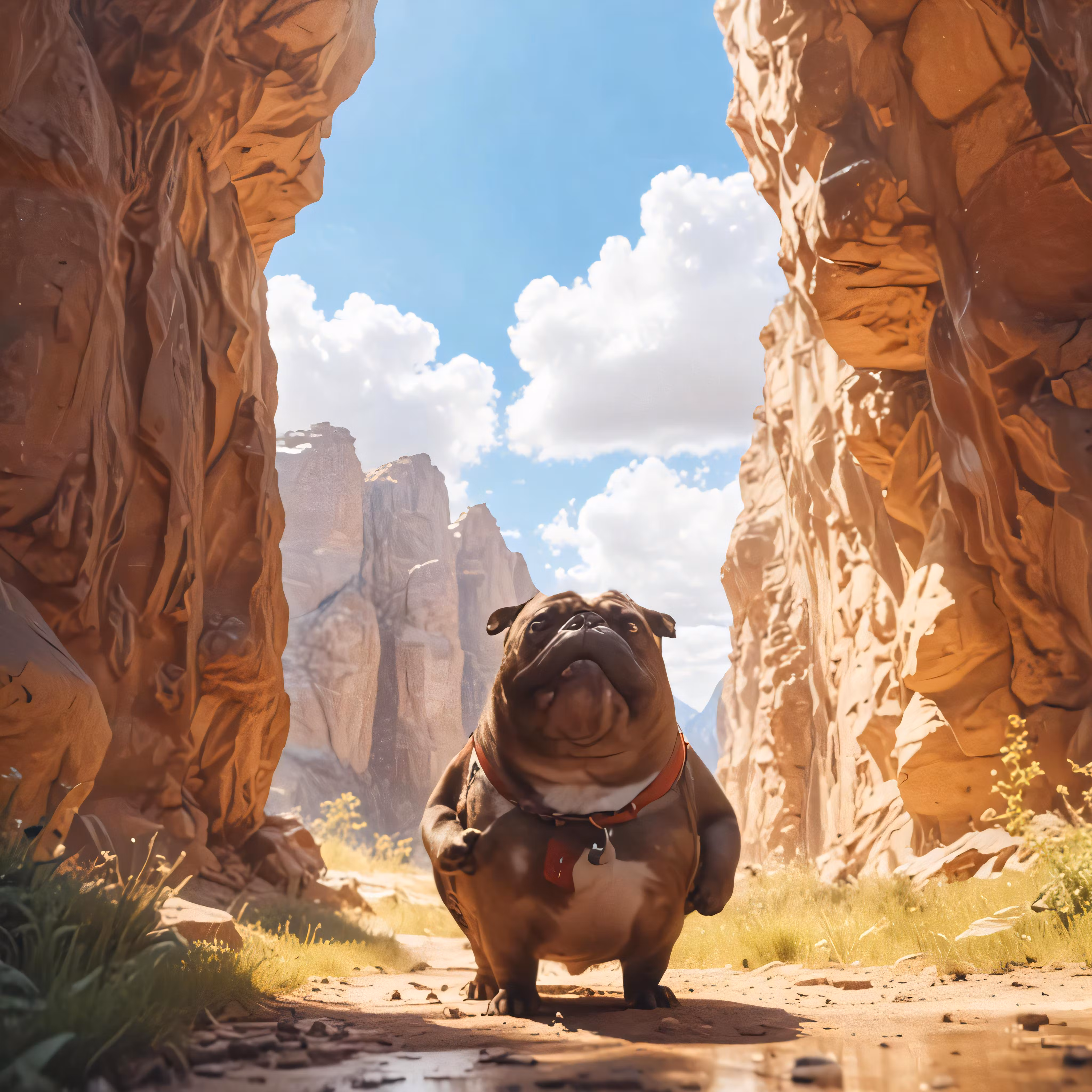 High resolution picture, free to use, the dog is sitting in front of some rock formations