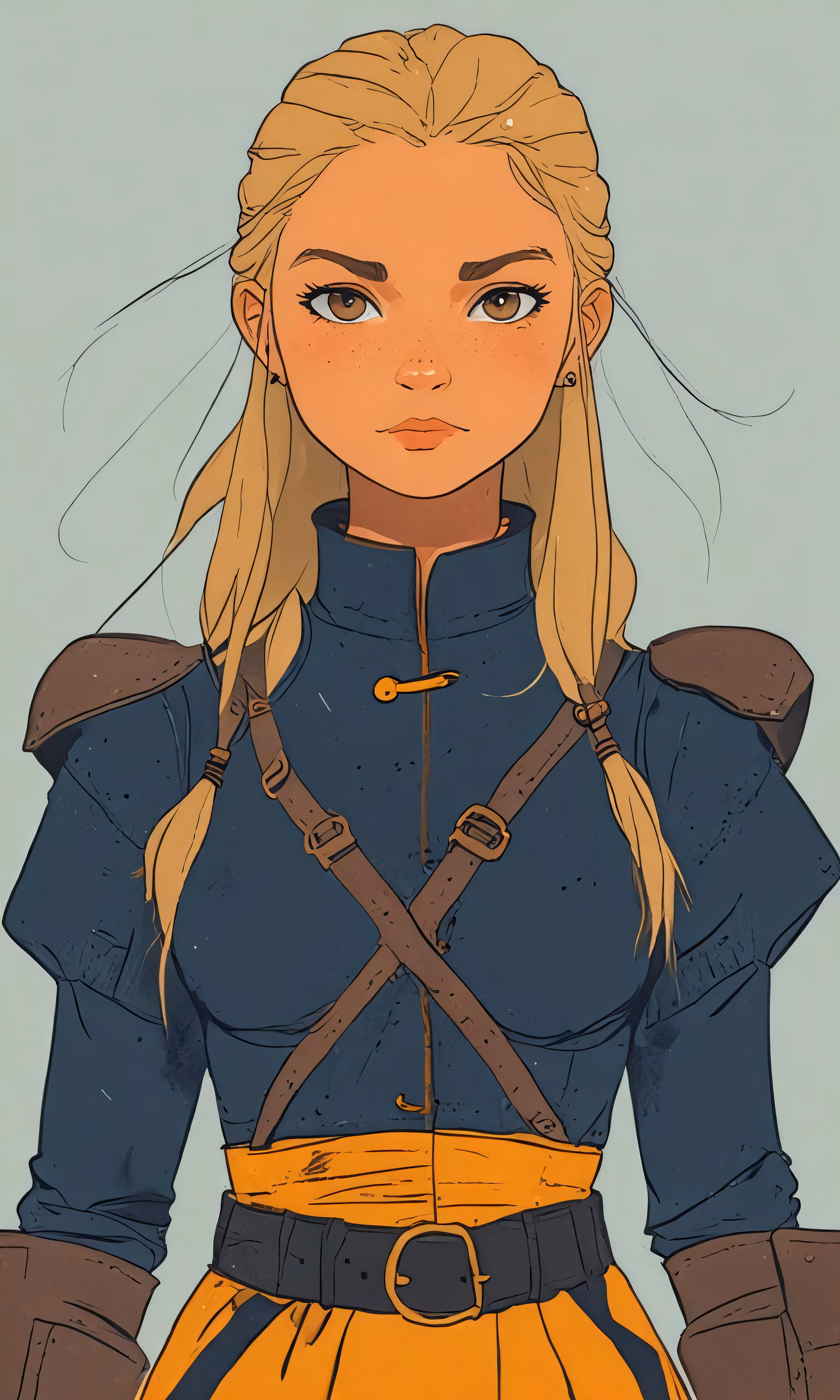 High resolution picture, free to use, the drawing shows a blonde haired woman in a blue dress