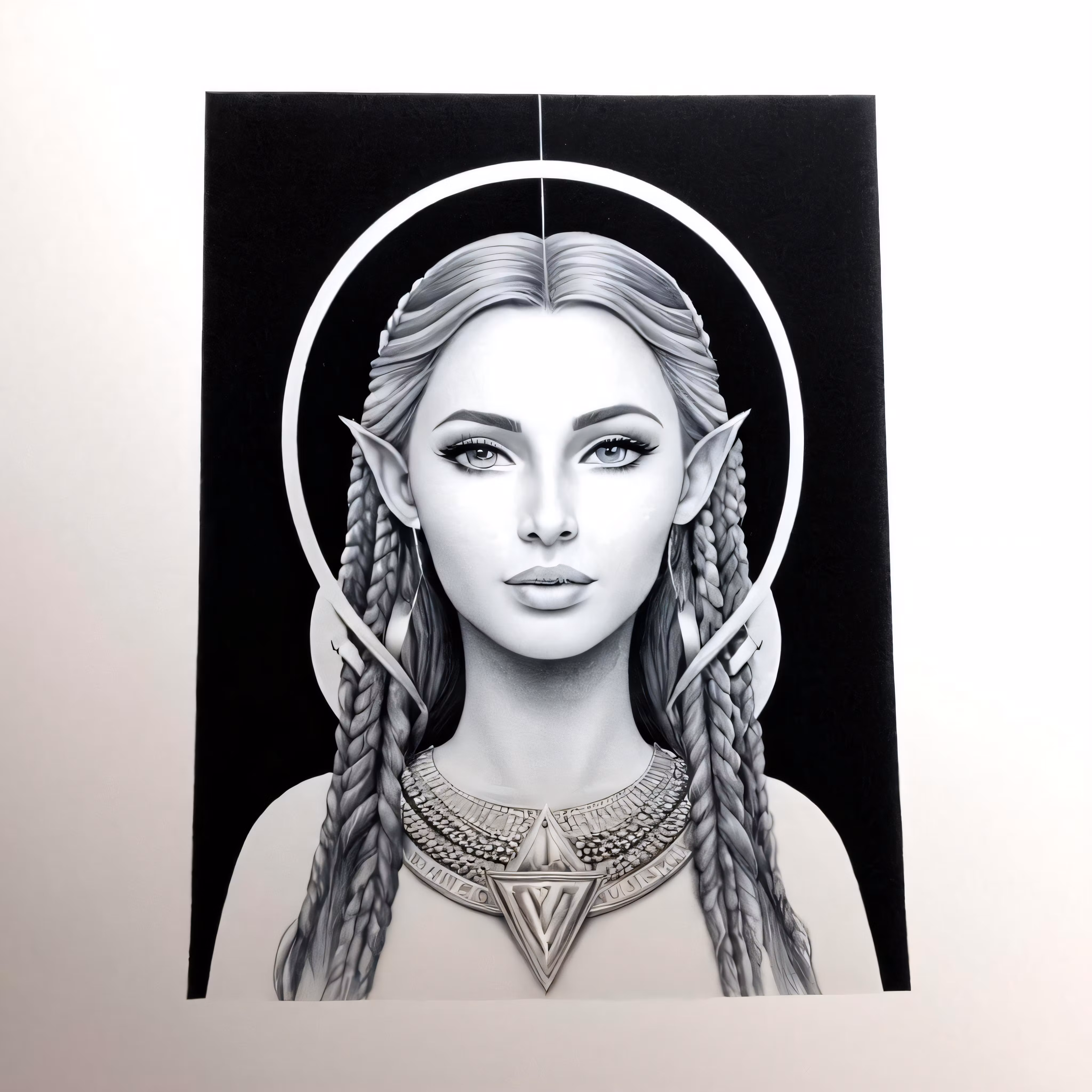 High resolution picture, free to use, the drawing shows a woman in braids and a moon