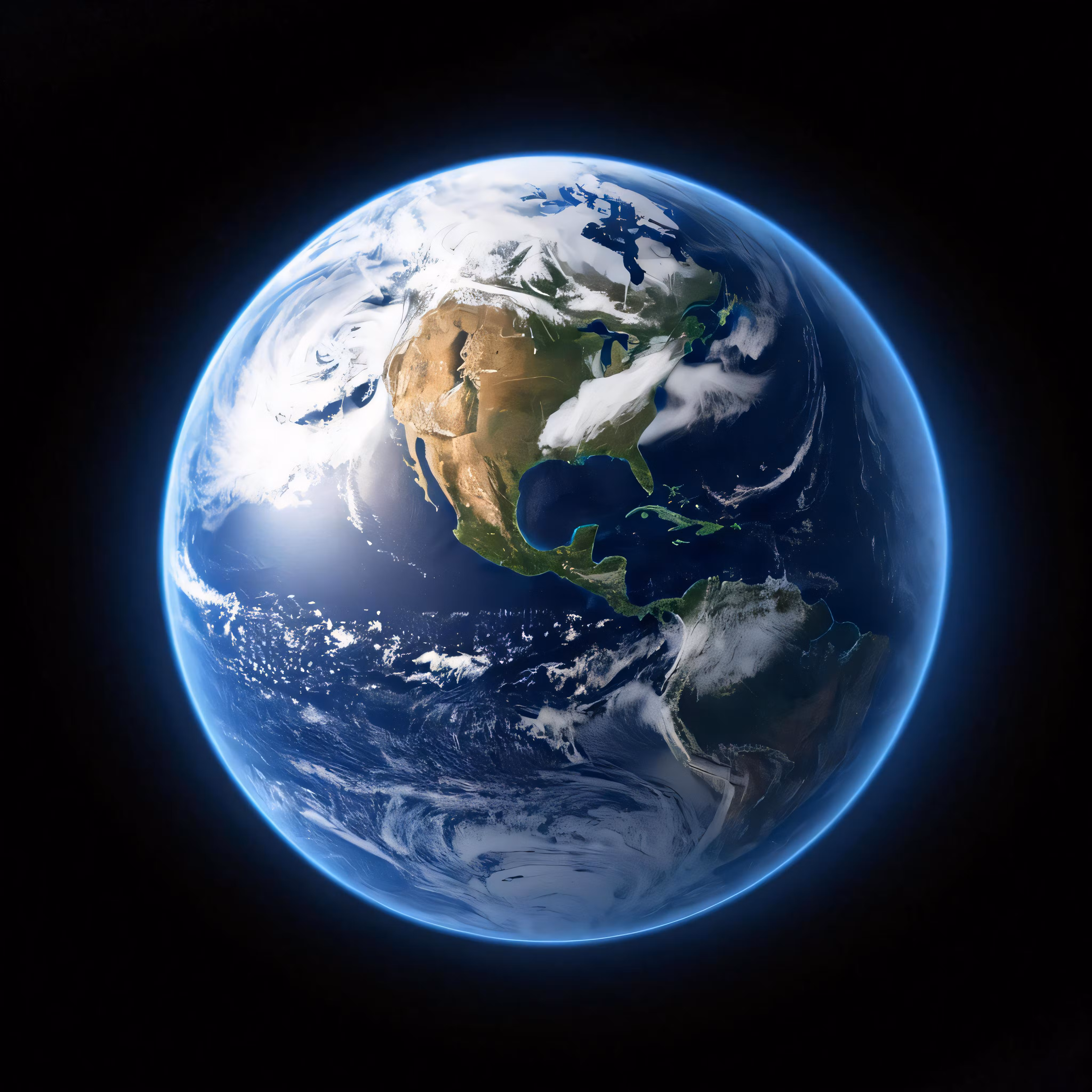 High resolution picture, free to use, the earth from space is shown with blue highlights