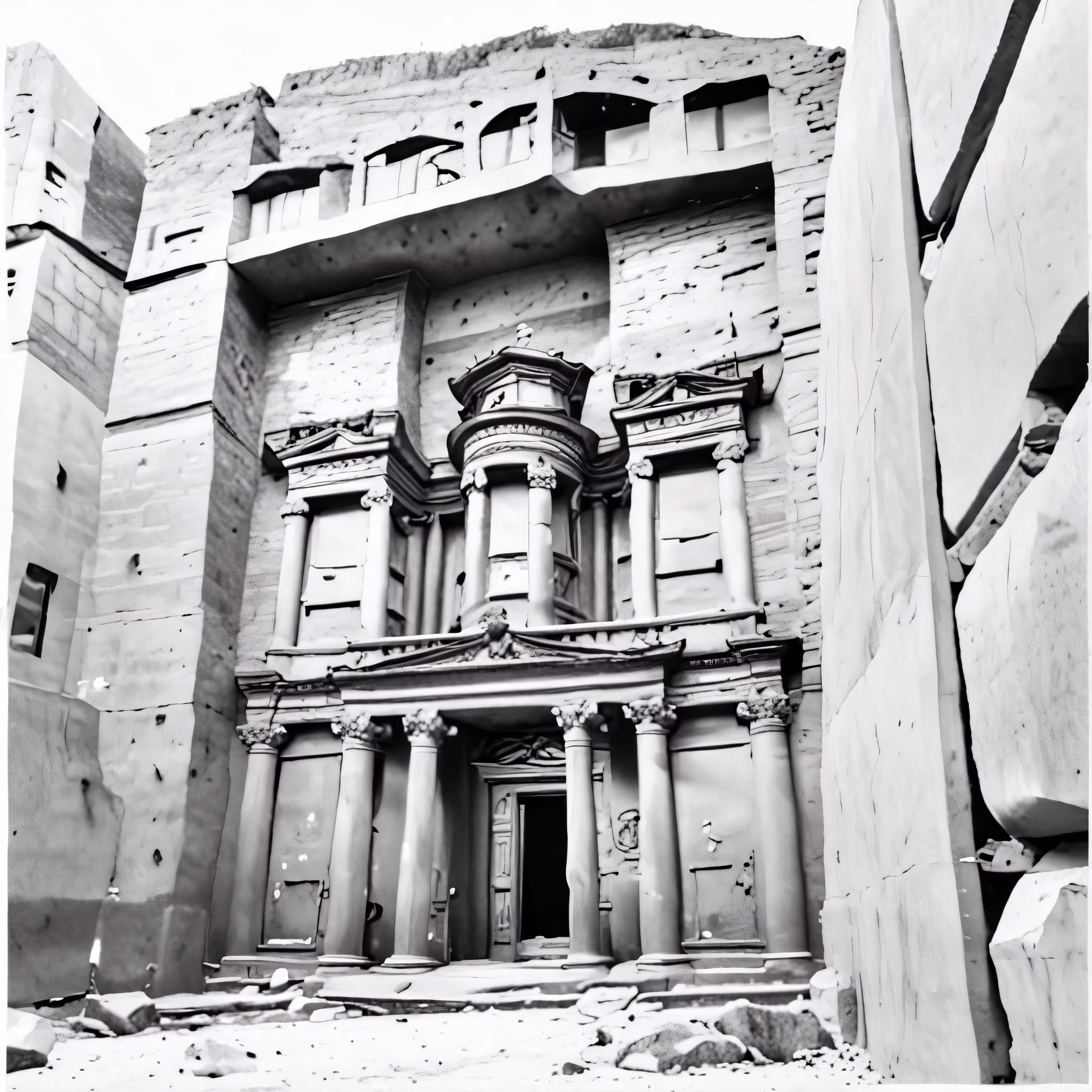 High resolution picture, free to use, the entrance to an old building with columns and a dome