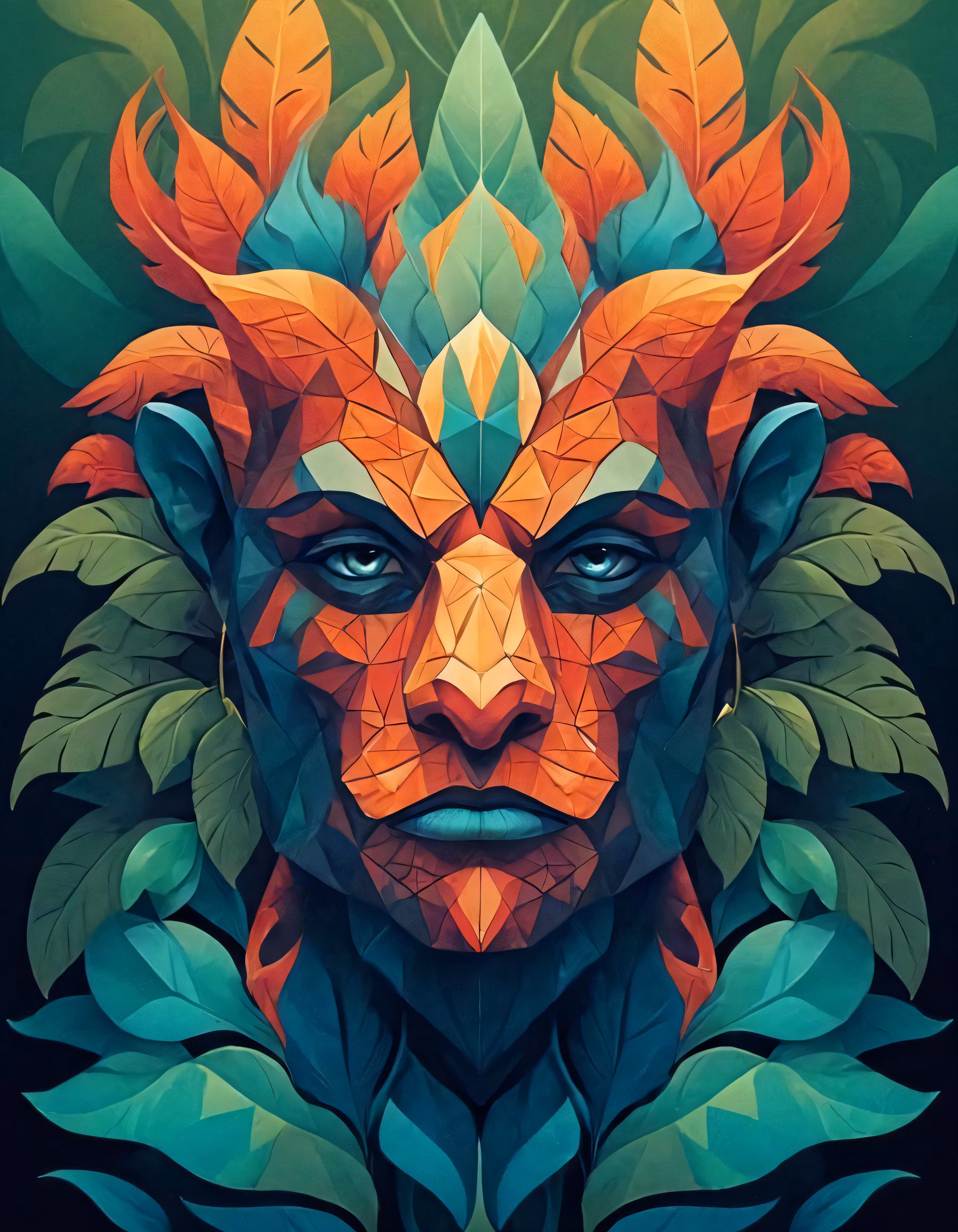 High resolution picture, free to use, the face and leaves are made out of triangles