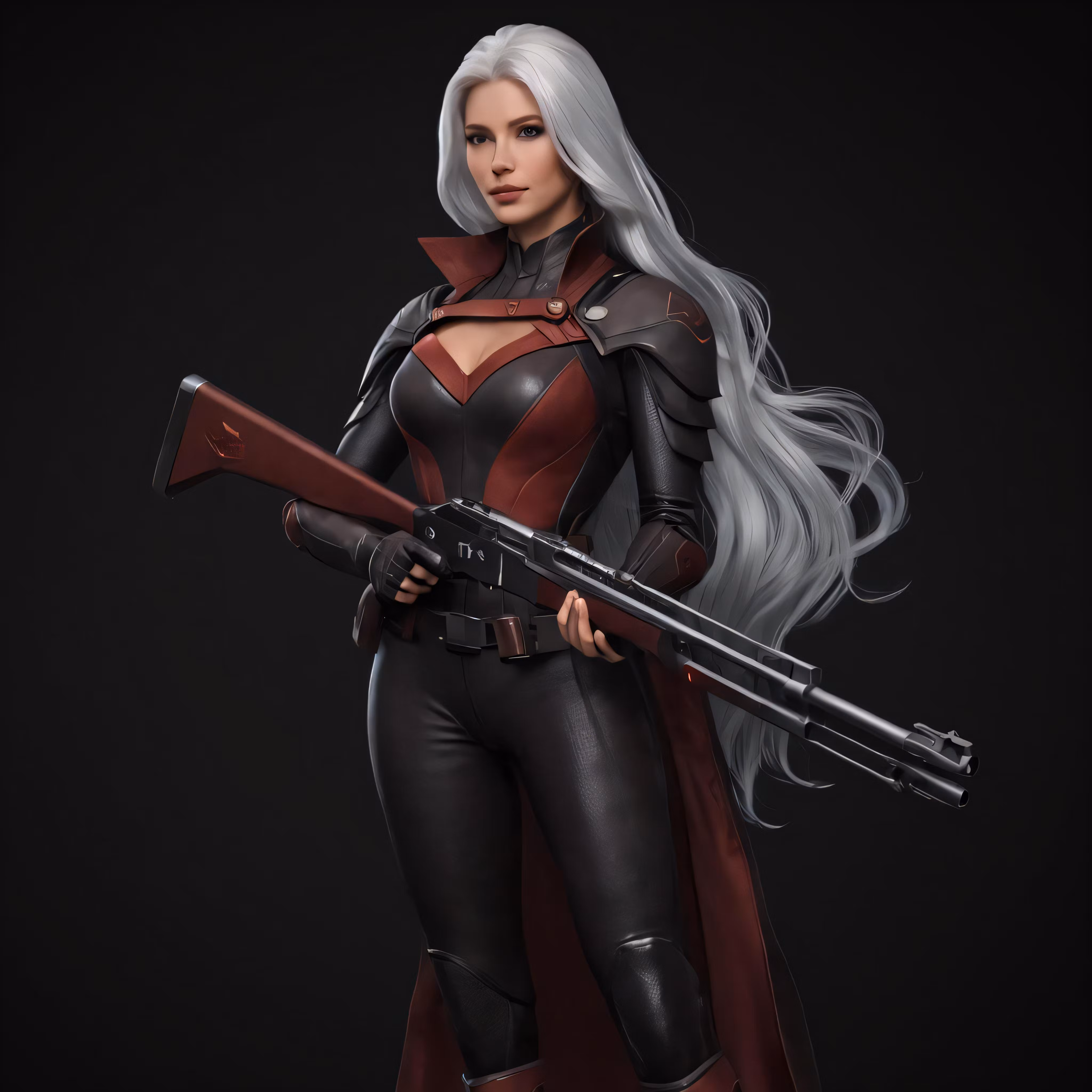 High resolution picture, free to use, the female villain with gun poses for a photo