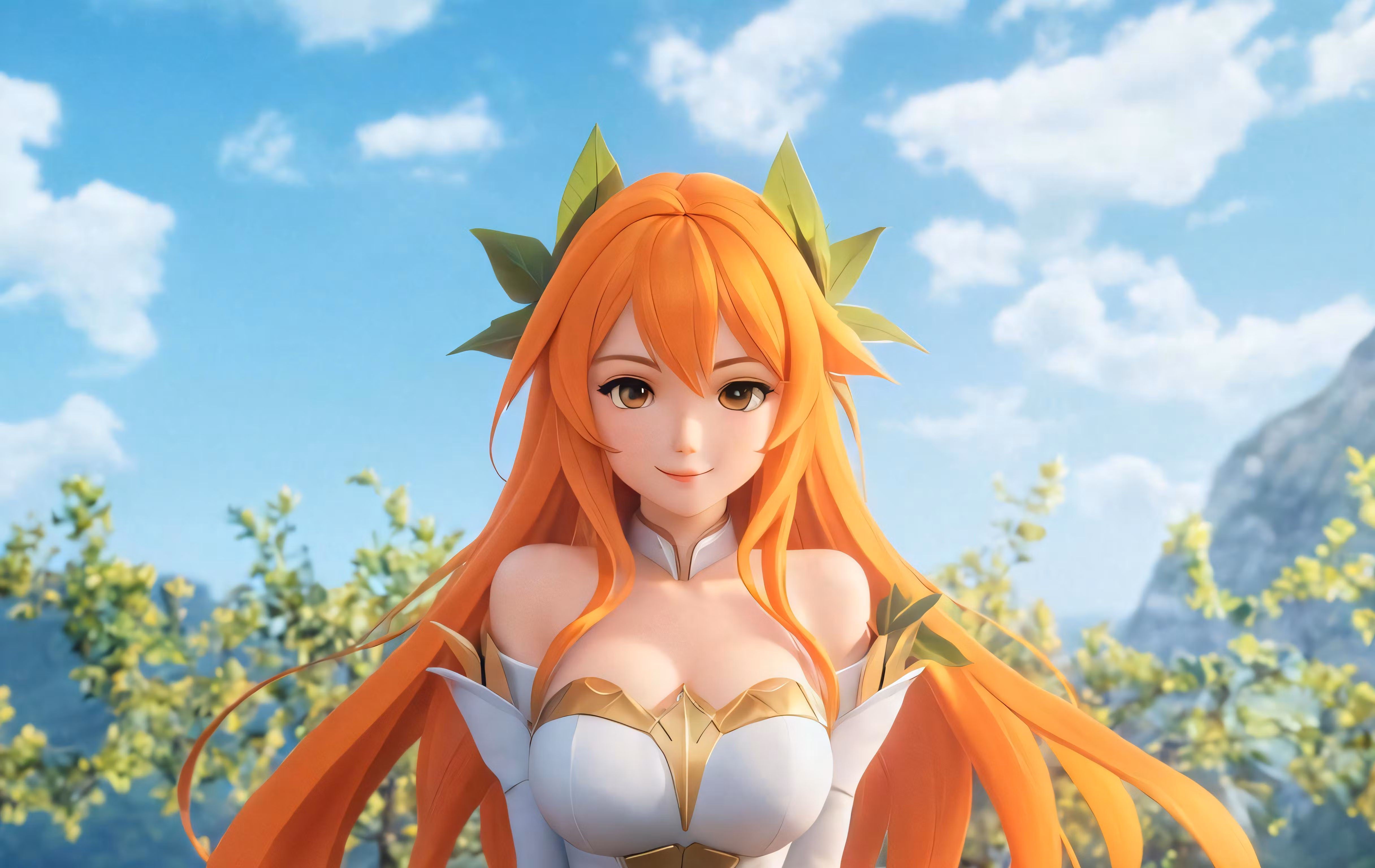 High resolution picture, free to use, the girl is dressed in an outfit and has long red hair