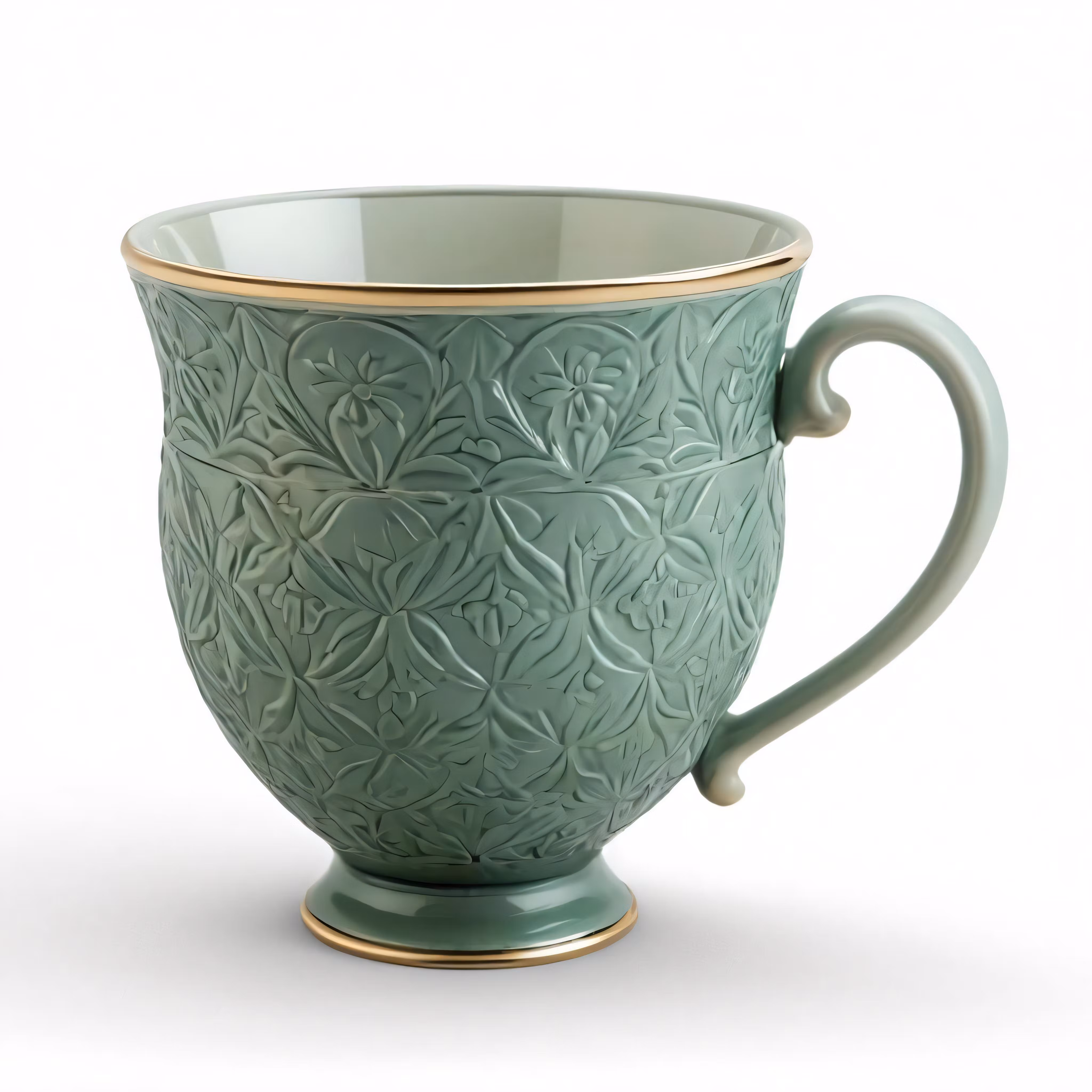 High resolution picture, free to use, the green flower pattern is a decorative cup