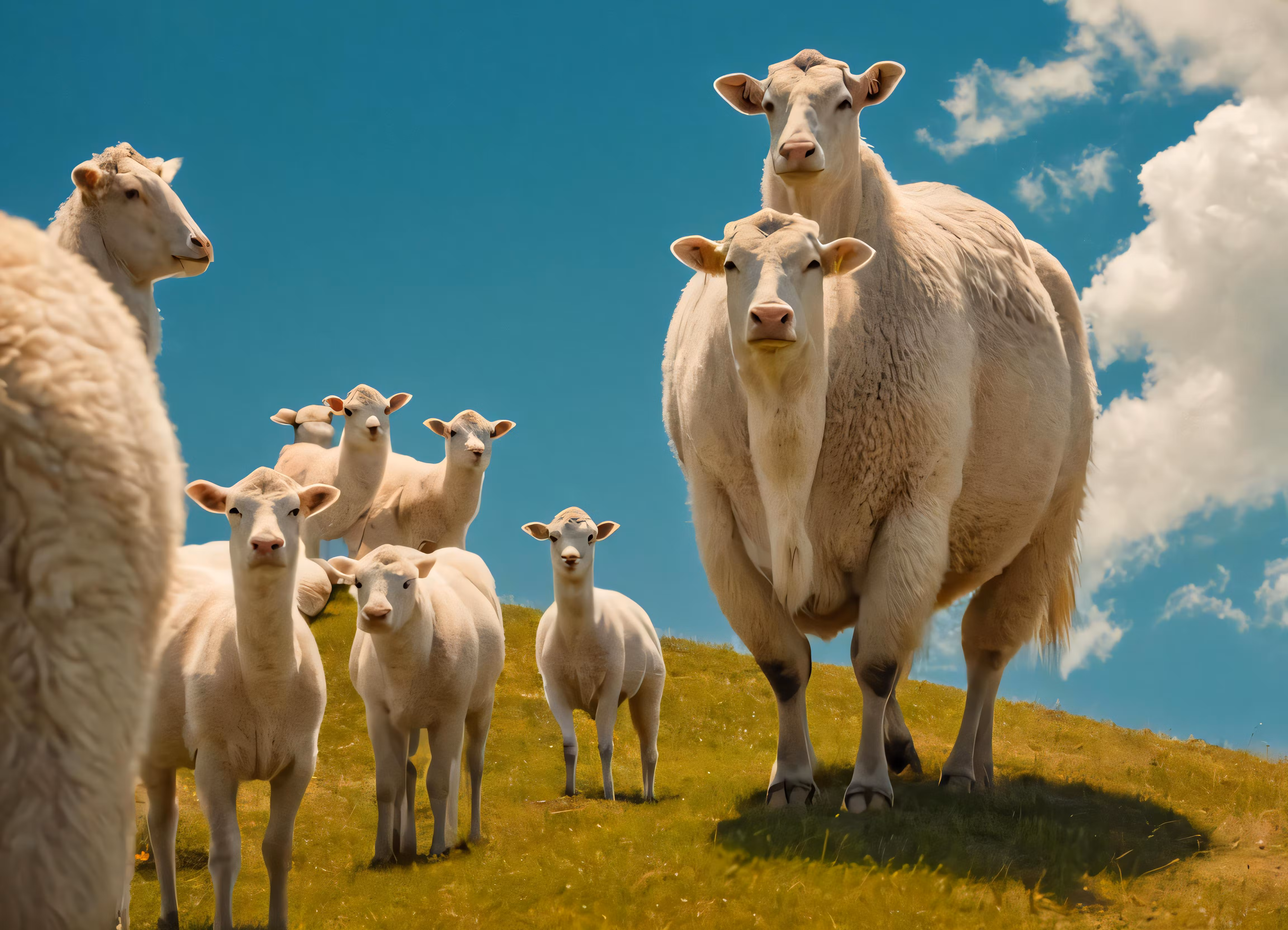 High resolution picture, free to use, the group of cows are all standing in the grass