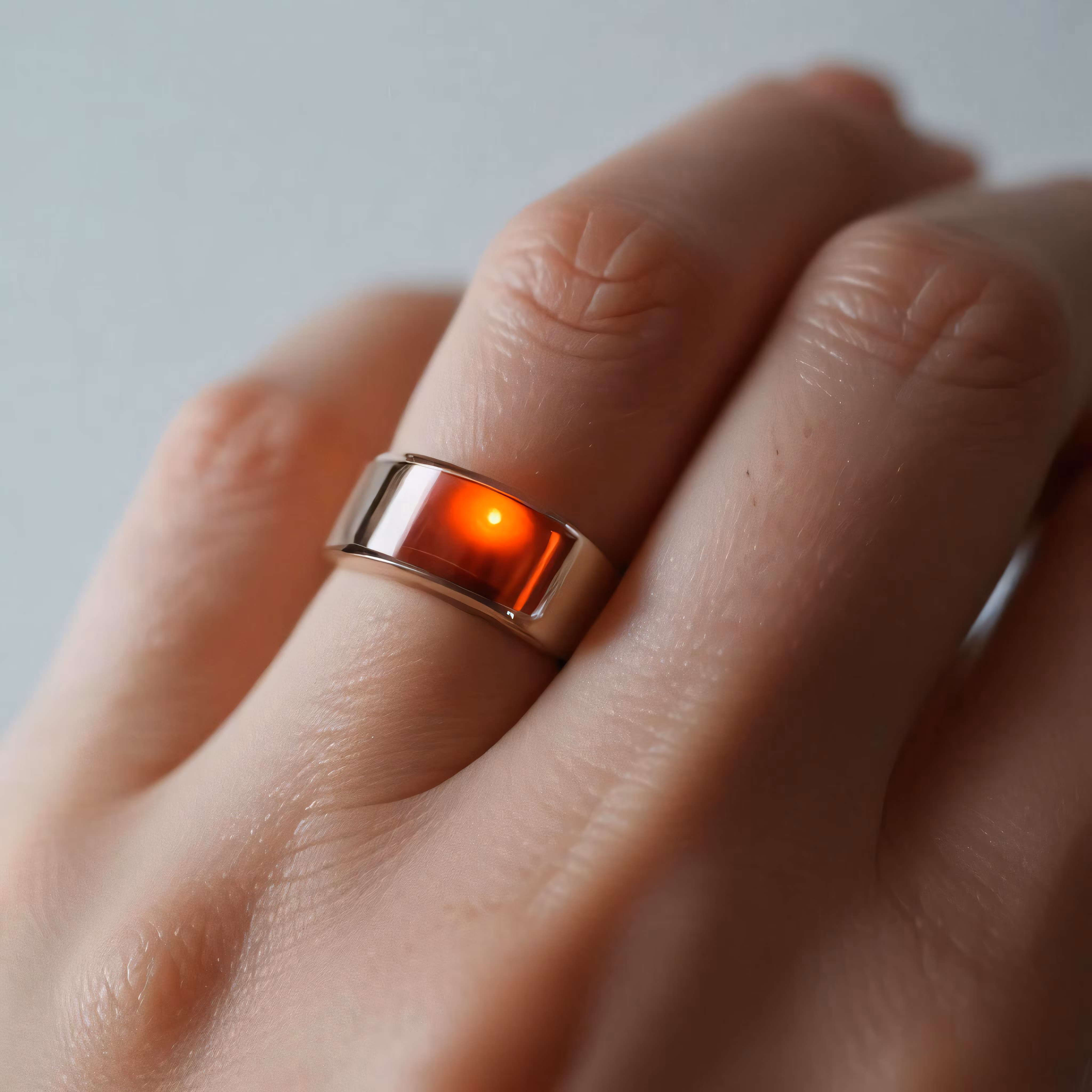 High resolution picture, free to use, the hand is holding an orange glowing ring