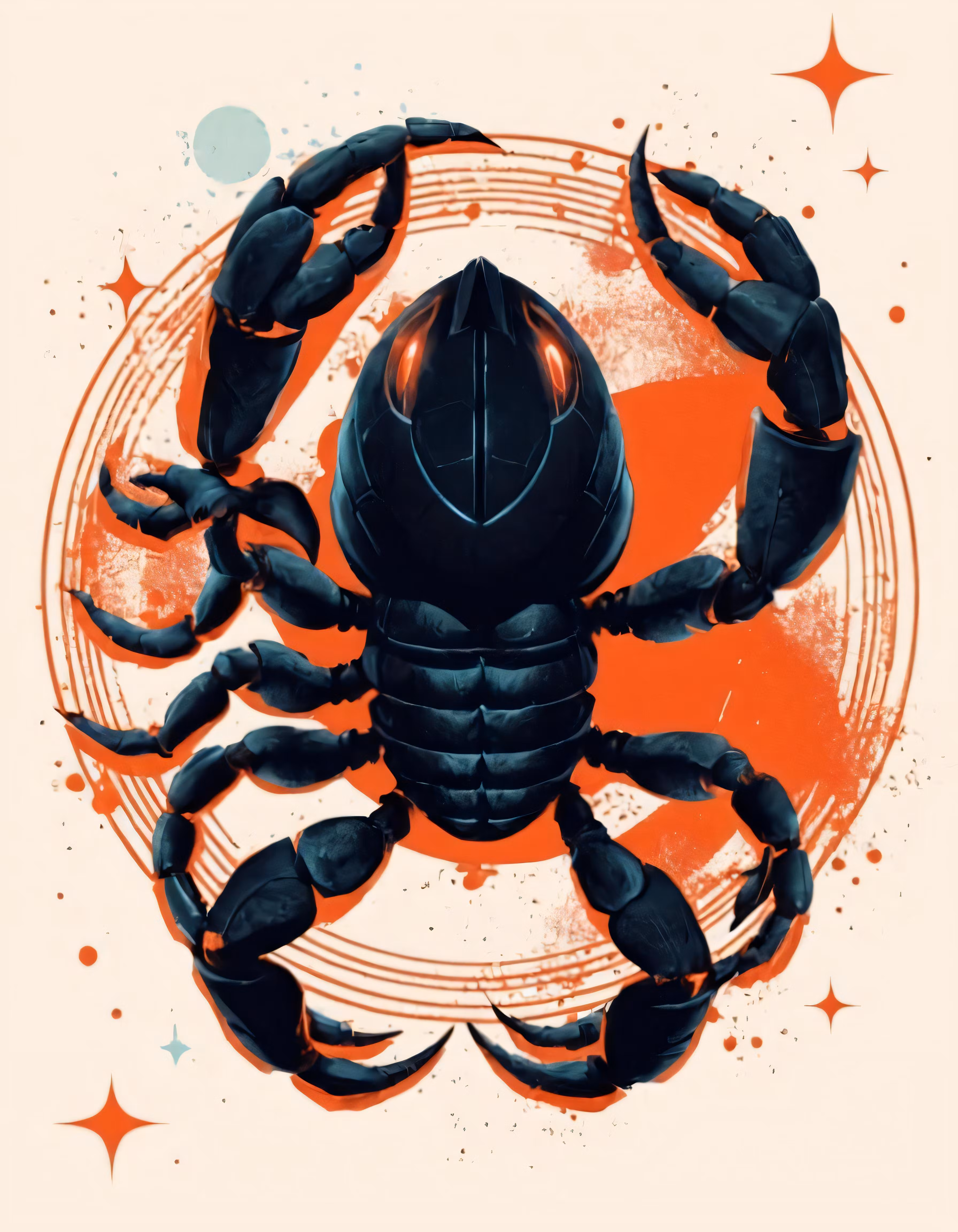 High resolution picture, free to use, the illustration depicts a large and detailed scorpion in an abstract manner