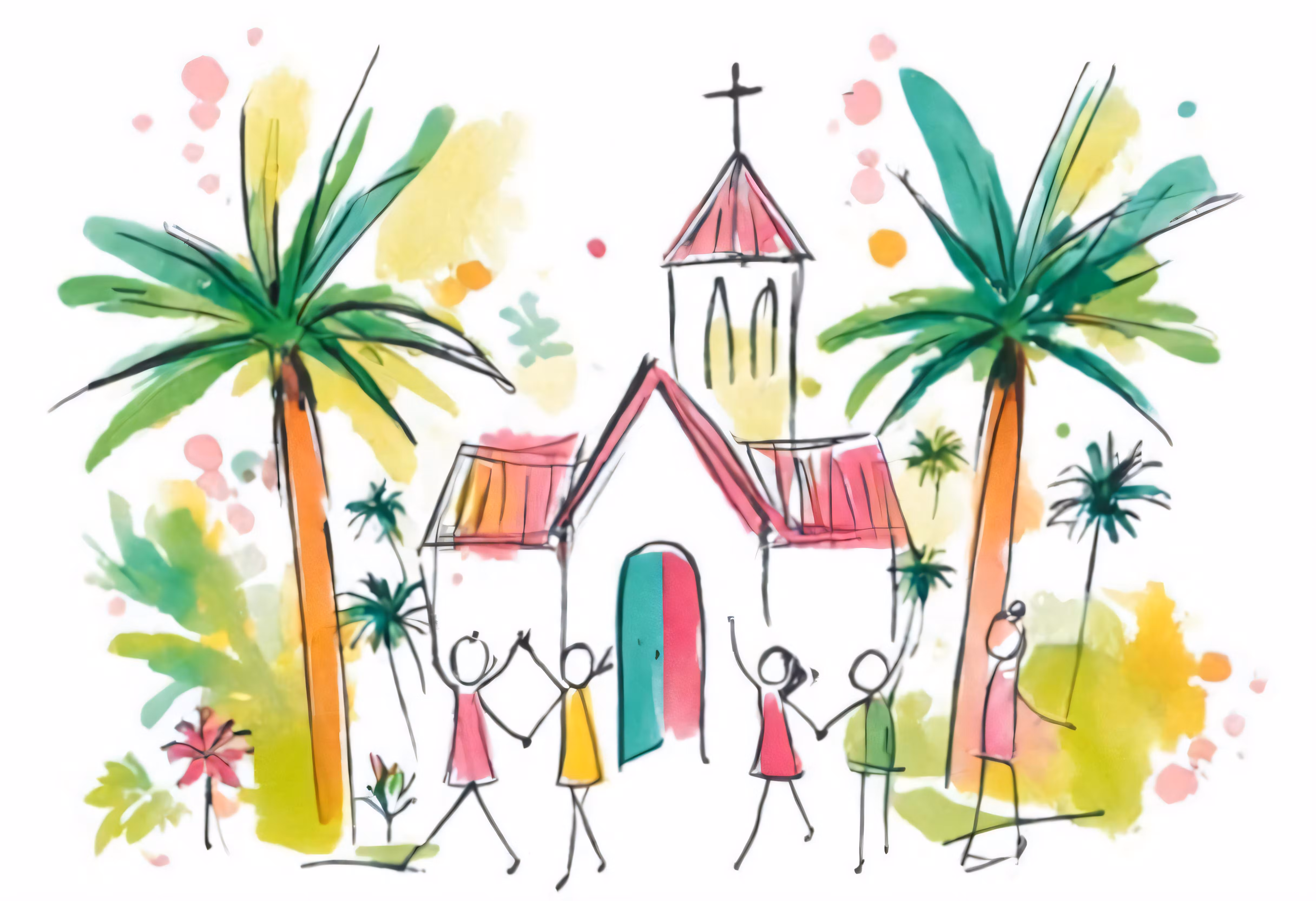 High resolution picture, free to use, the illustration shows a painting of people in different colors outside