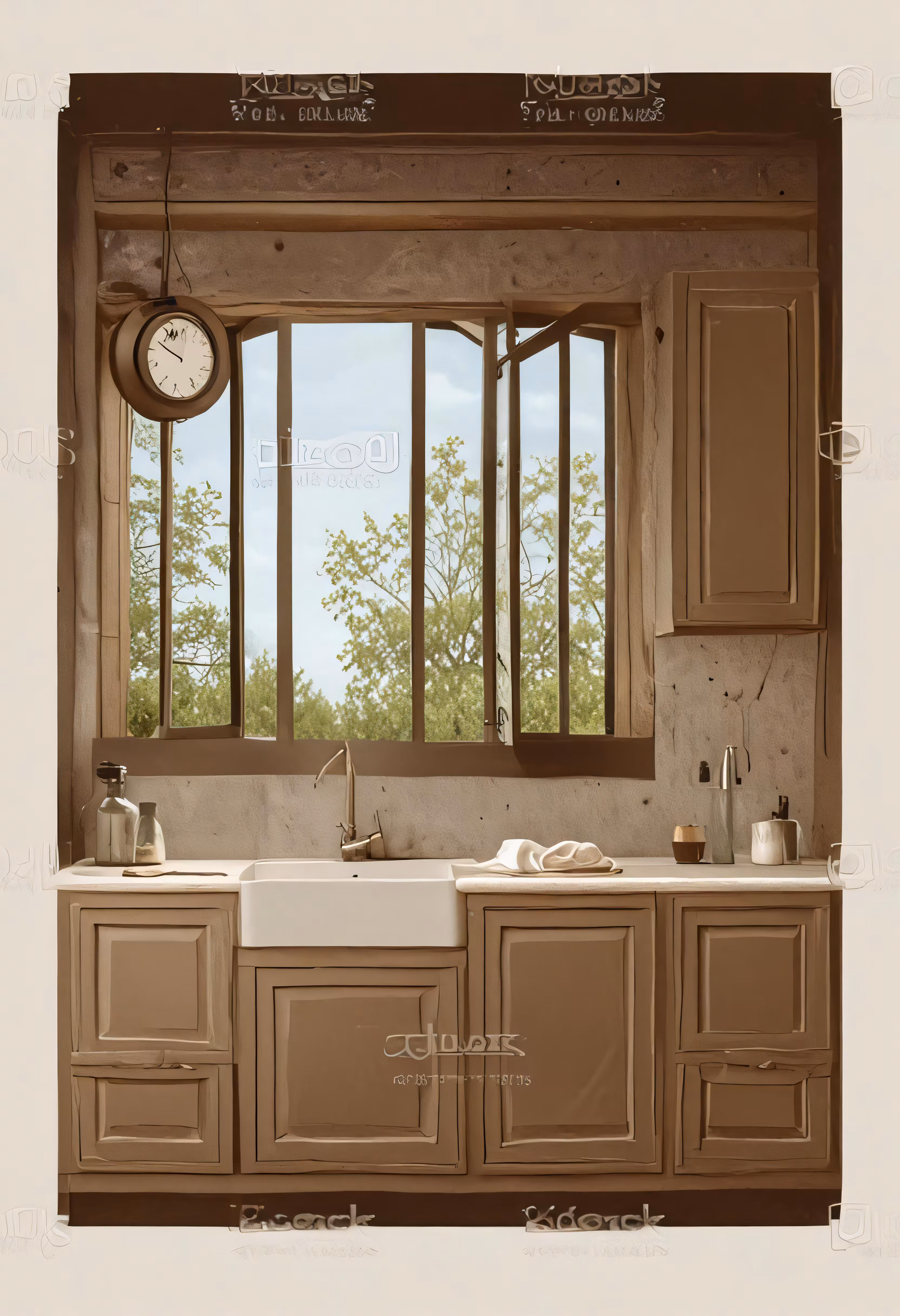High resolution picture, free to use, the kitchen cabinets are all brown and white