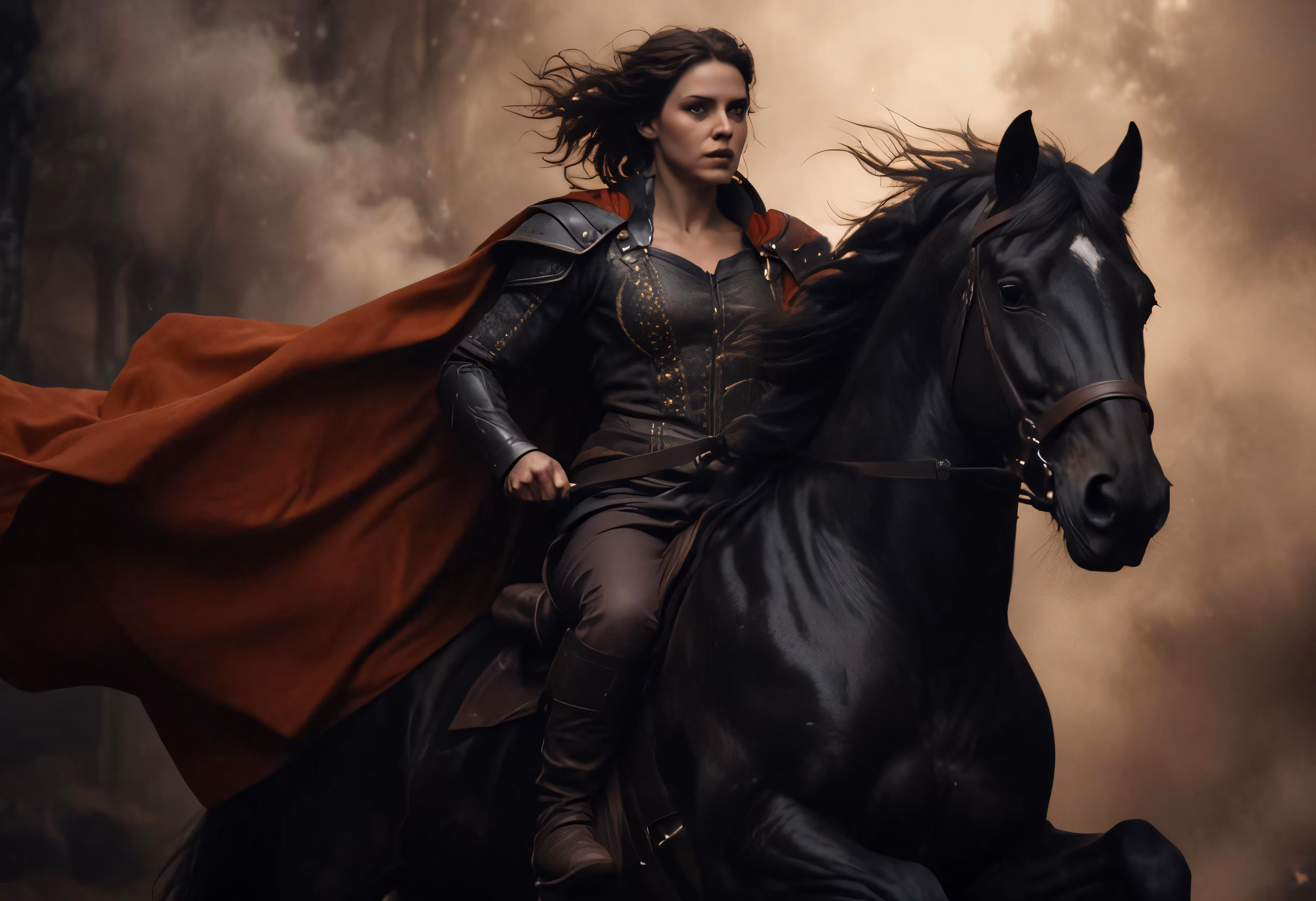High resolution picture, free to use, the lady is riding on the horse, and wearing red clothing