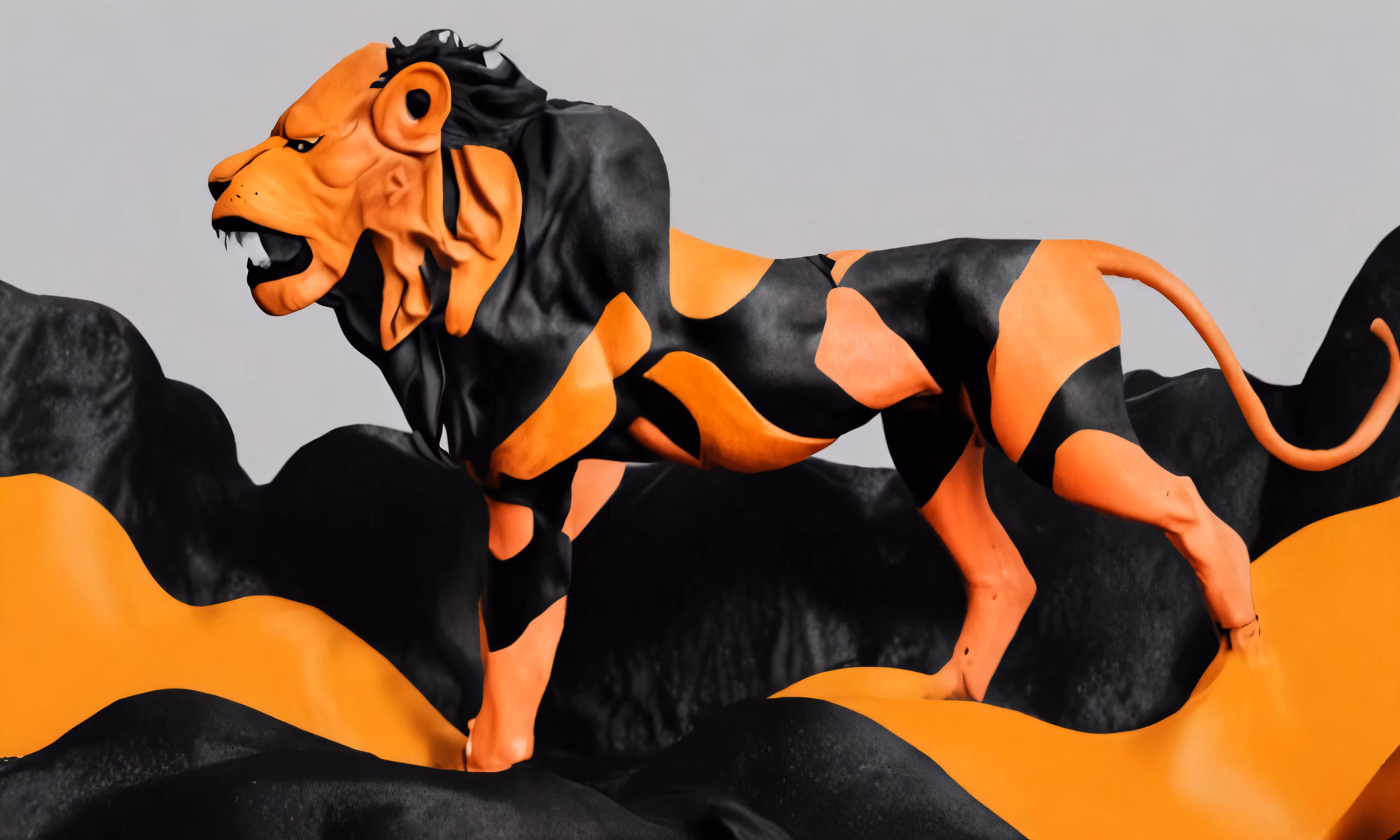 High resolution picture, free to use, the lion figure is standing on some black rocks