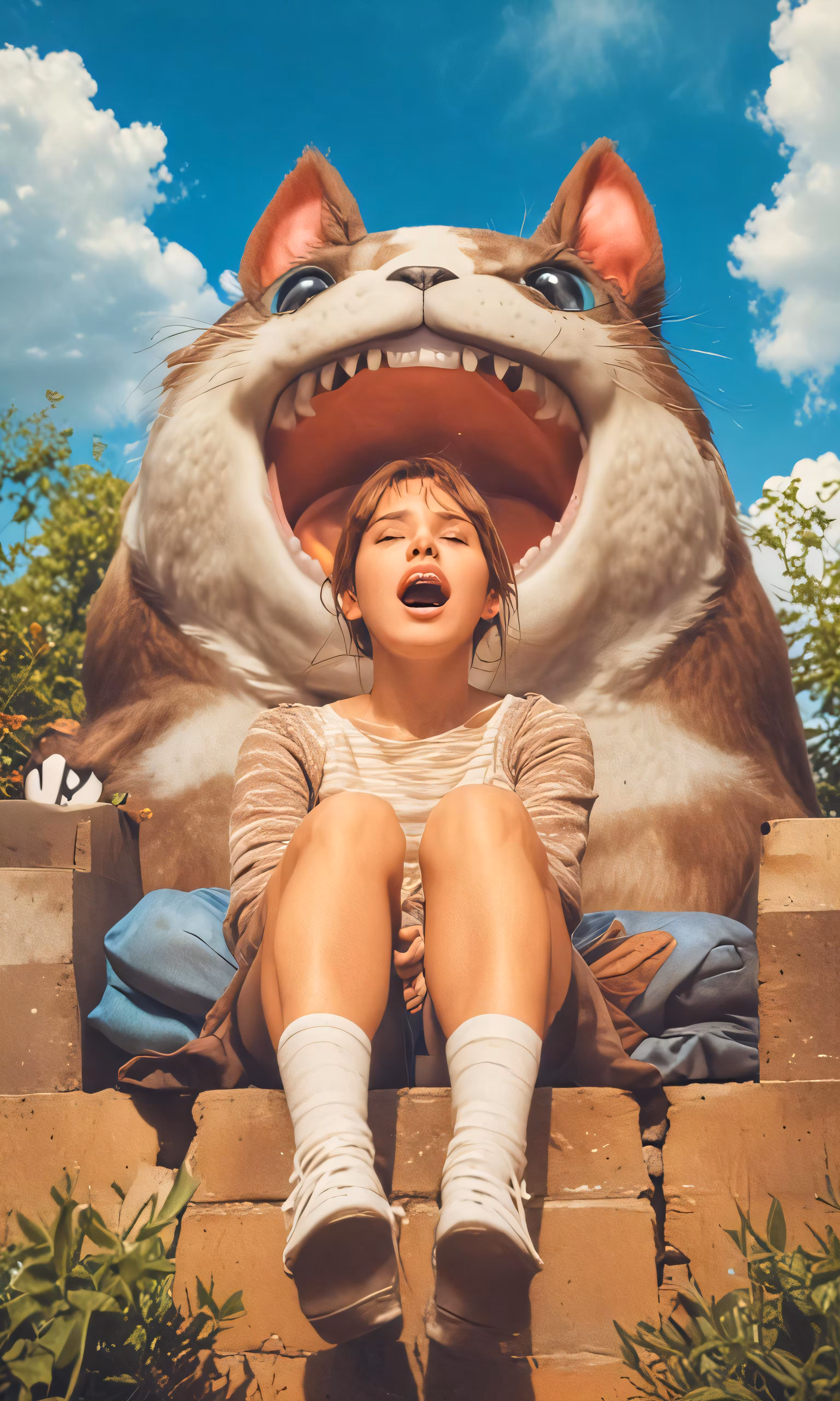 High resolution picture, free to use, the little girl is sitting under a giant toy