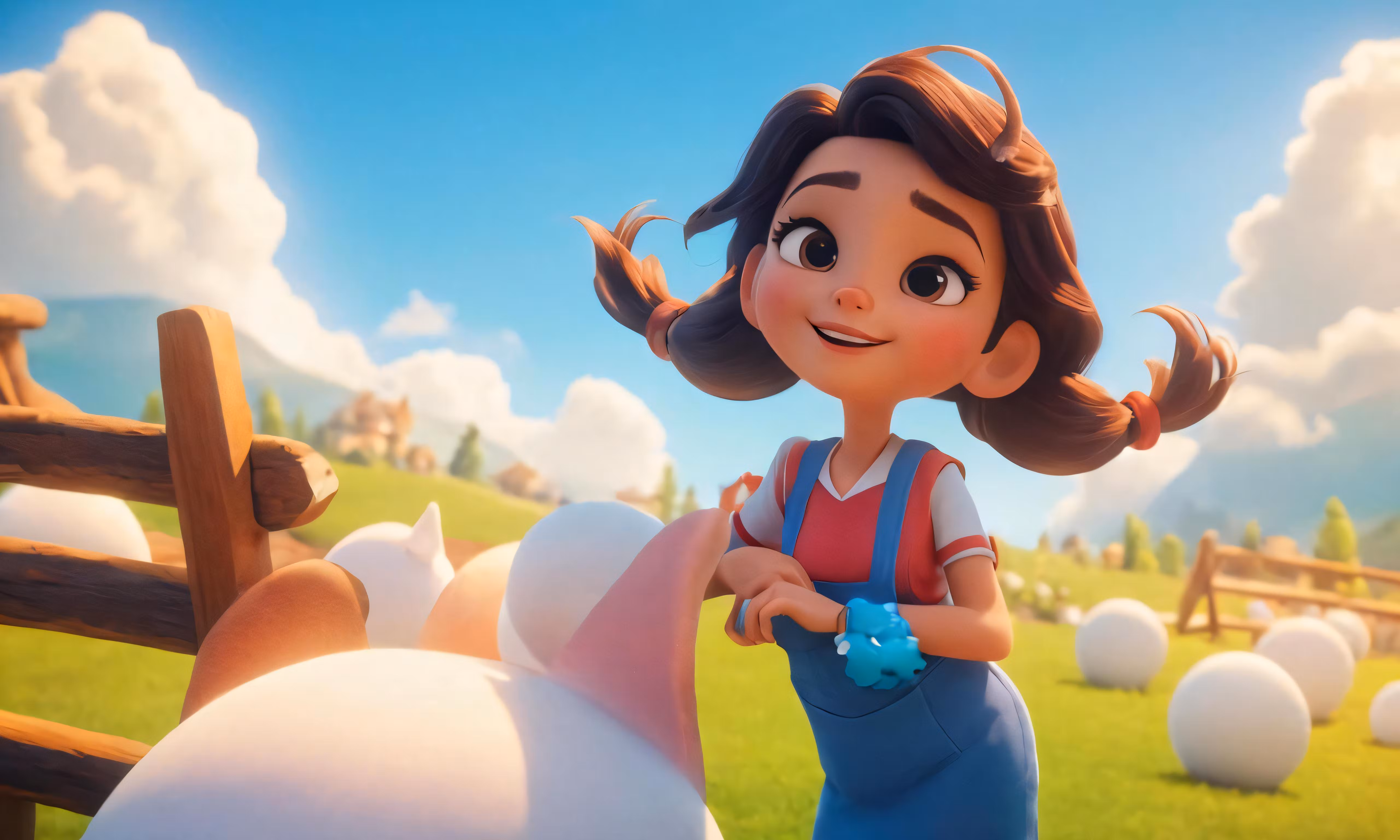 High resolution picture, free to use, the little girl is standing in front of a herd of sheep