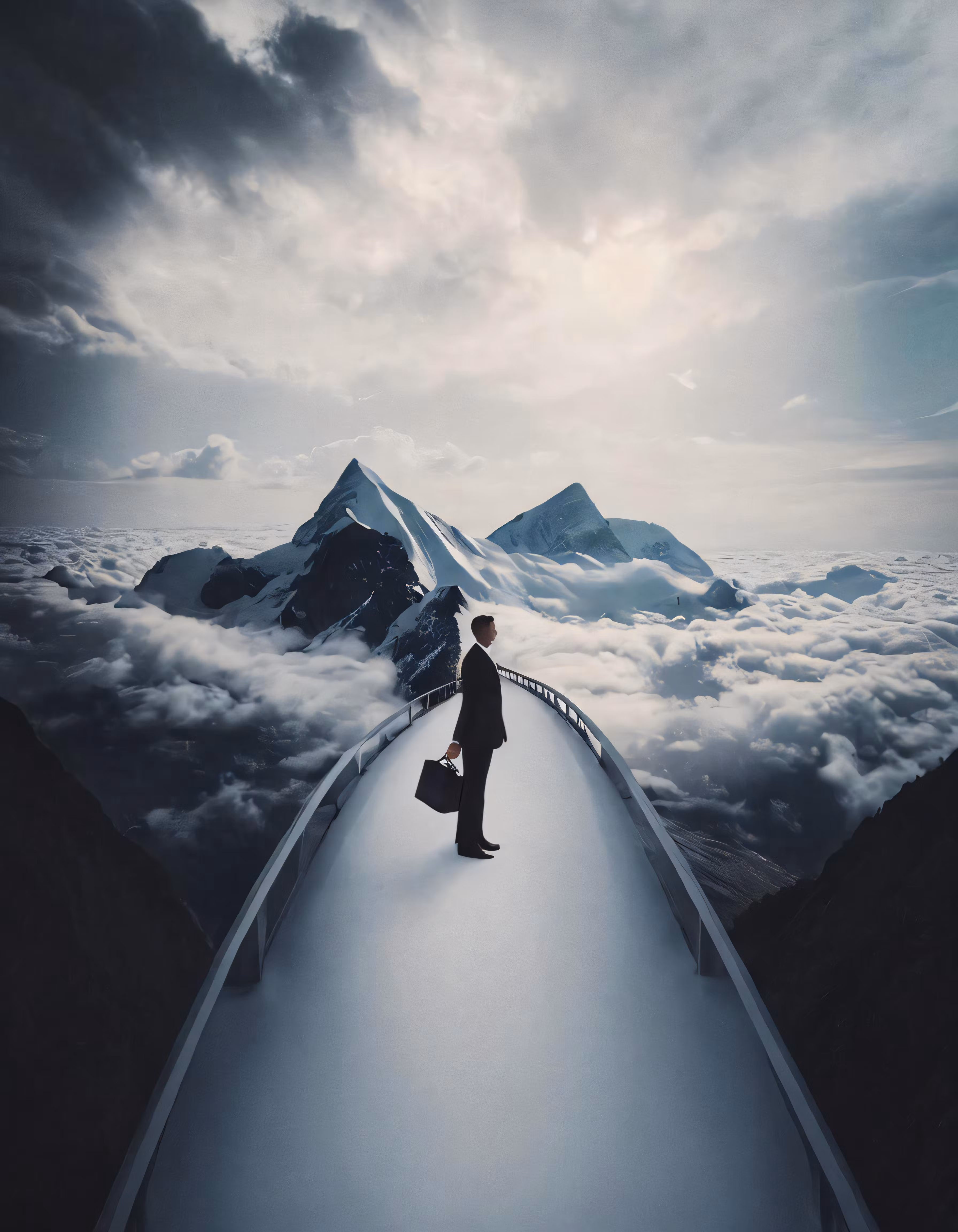 High resolution picture, free to use, the man in black is standing on the edge of a high mountain