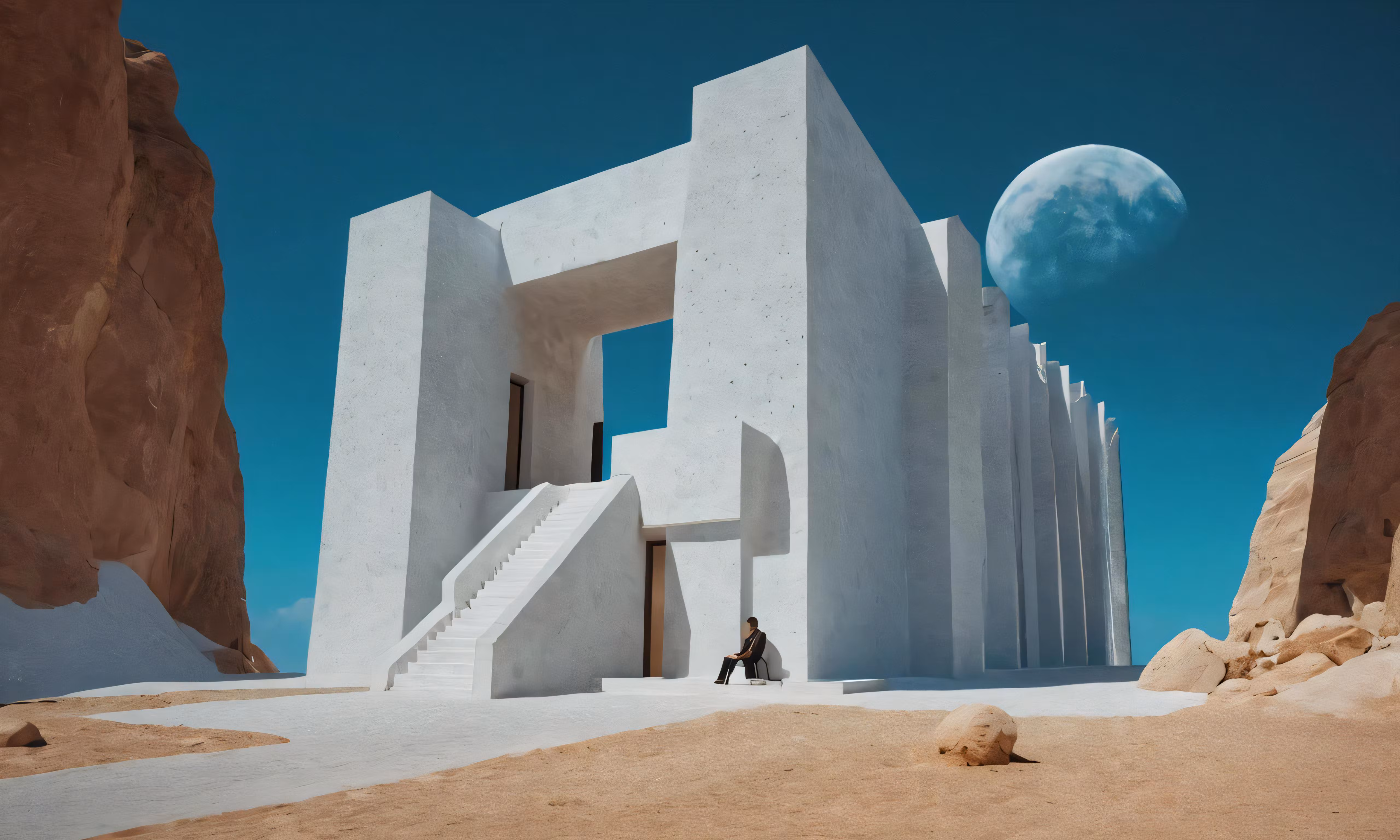 High resolution picture, free to use, the man is sitting outside of an art deco