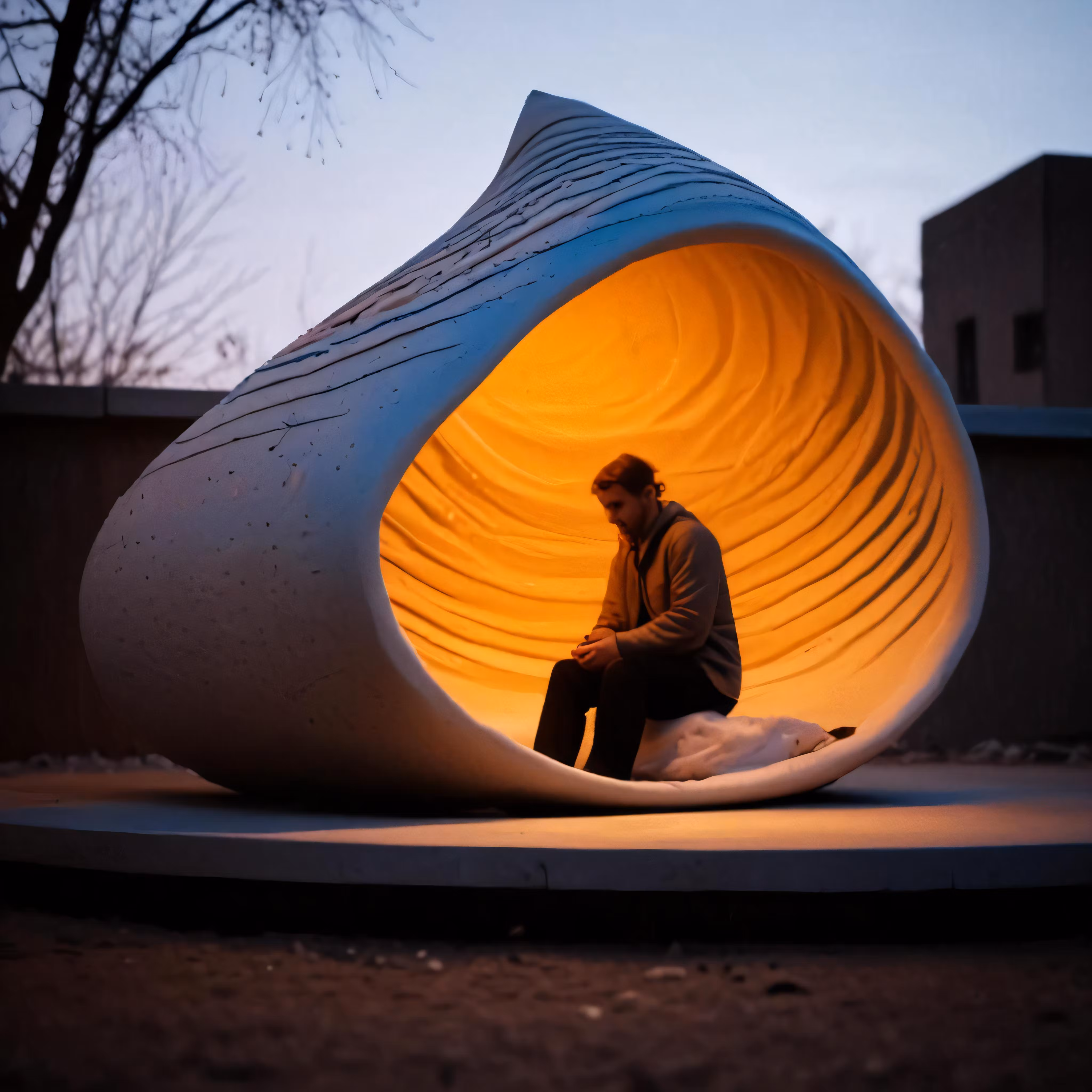 High resolution picture, free to use, the man sits in a unusual design sitting on a platform