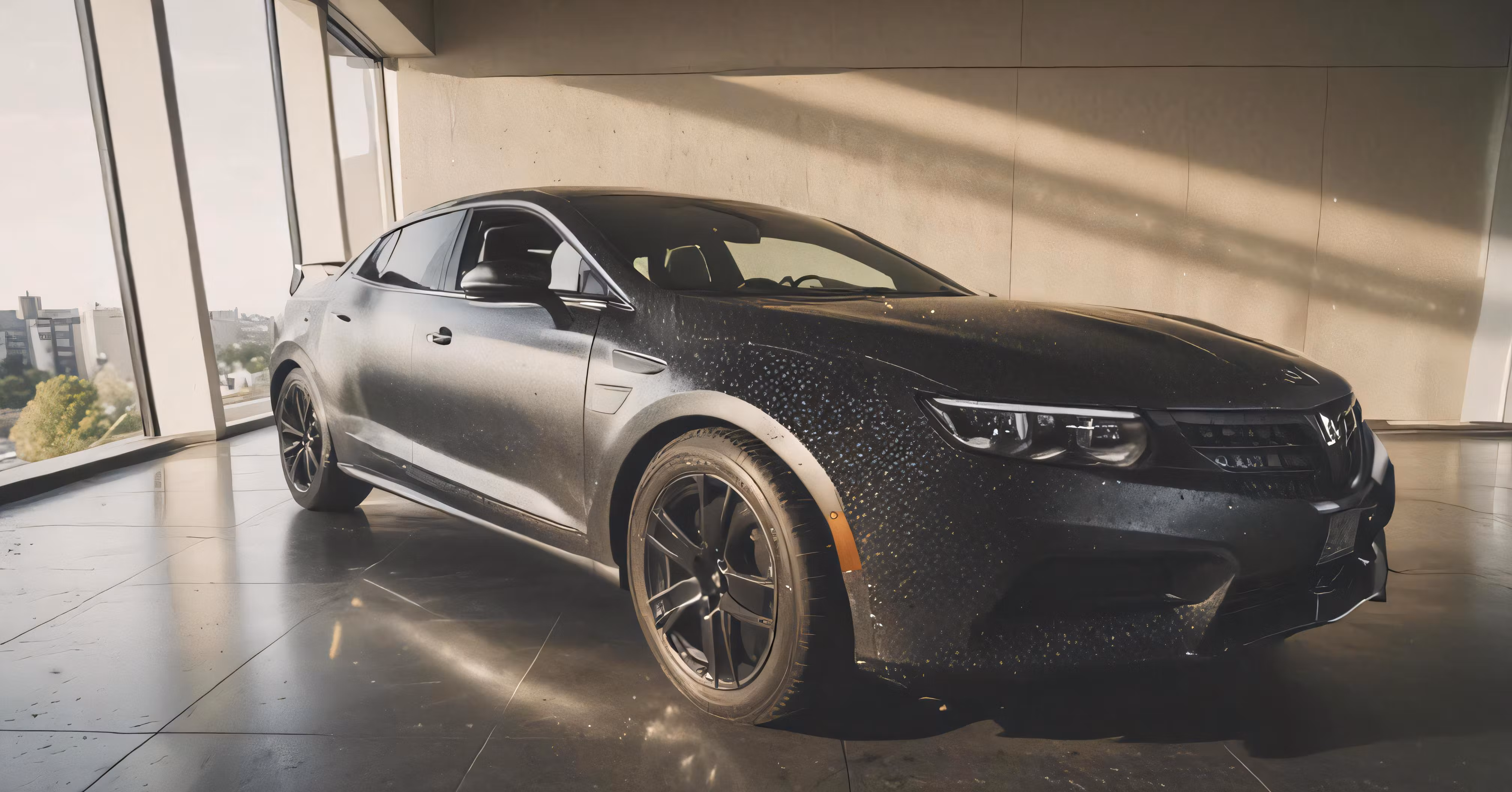 High resolution picture, free to use, the new alfa coupe is parked by the window
