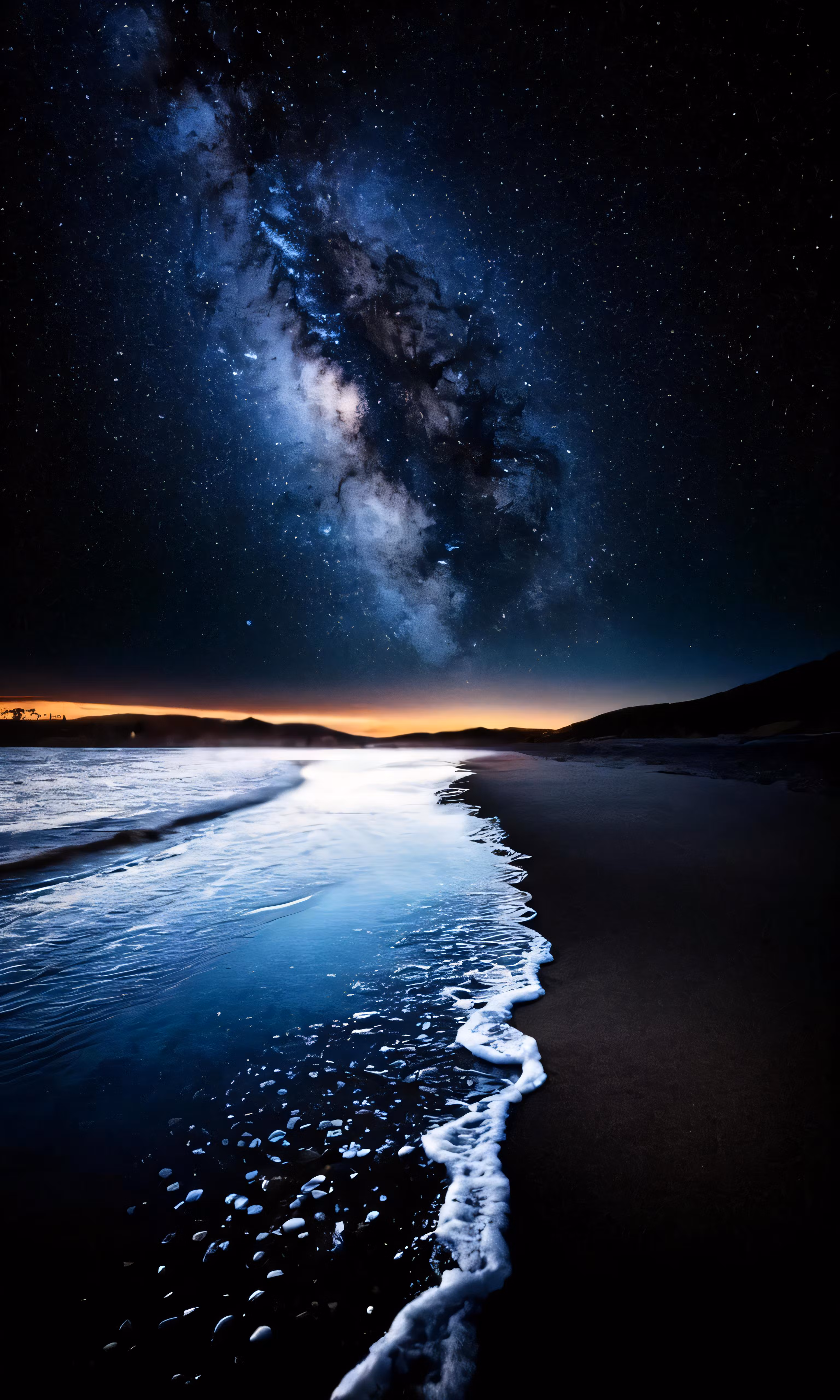 High resolution picture, free to use, the night sky with stars, the ocean and the beach