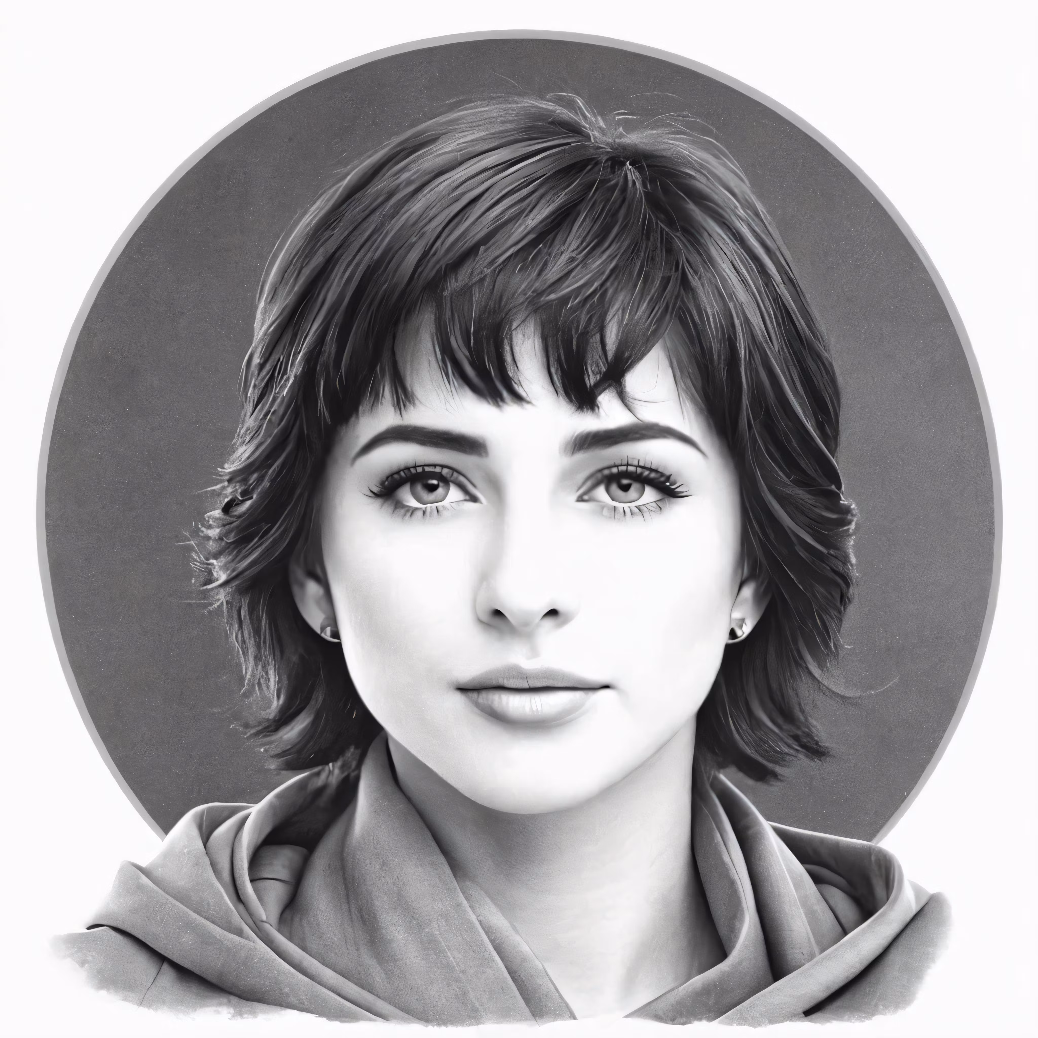 High resolution picture, free to use, the official logo for the 50 /a black and white drawing of a woman with bangs