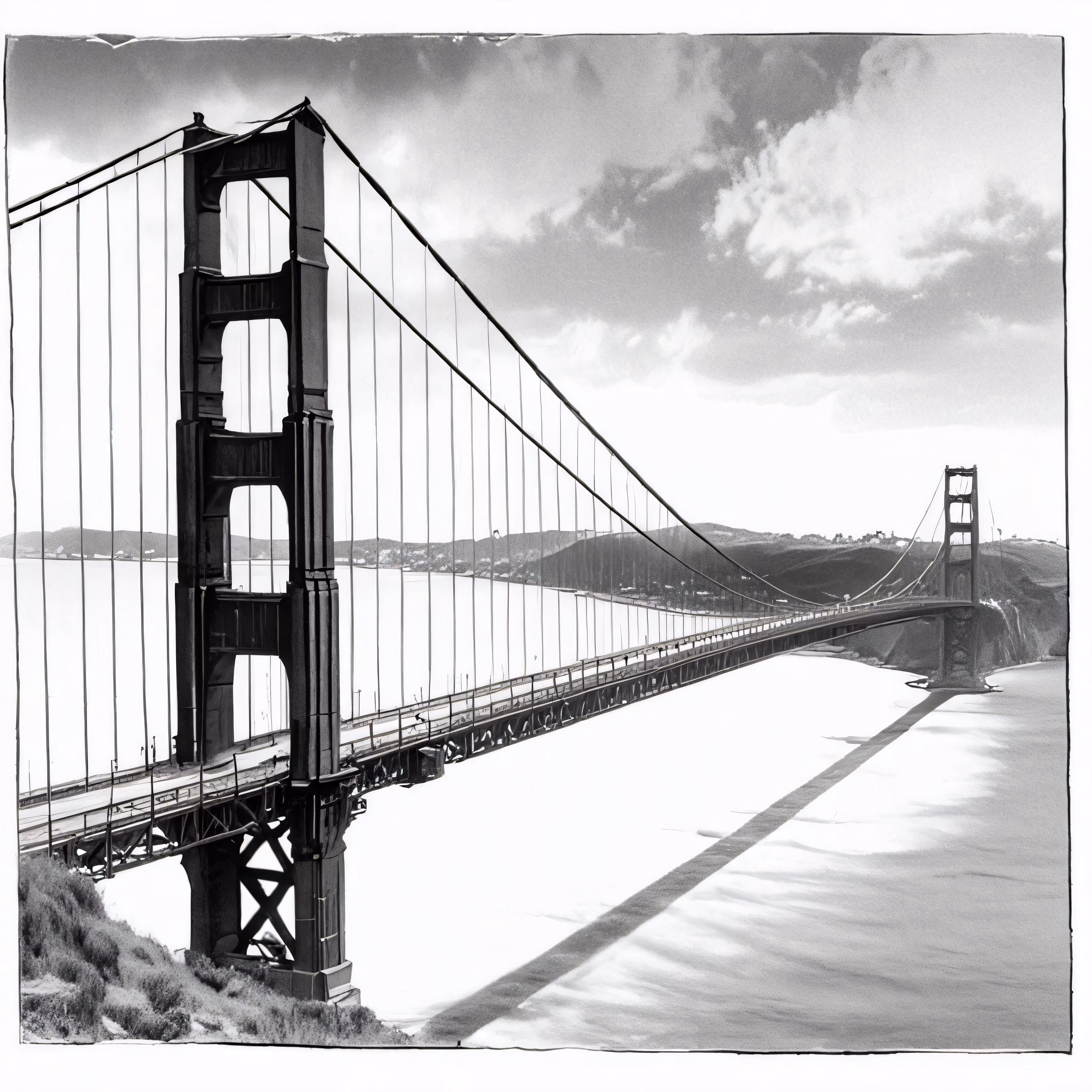 High resolution picture, free to use, the official logo for the 50 /a black and white photo of a bridge