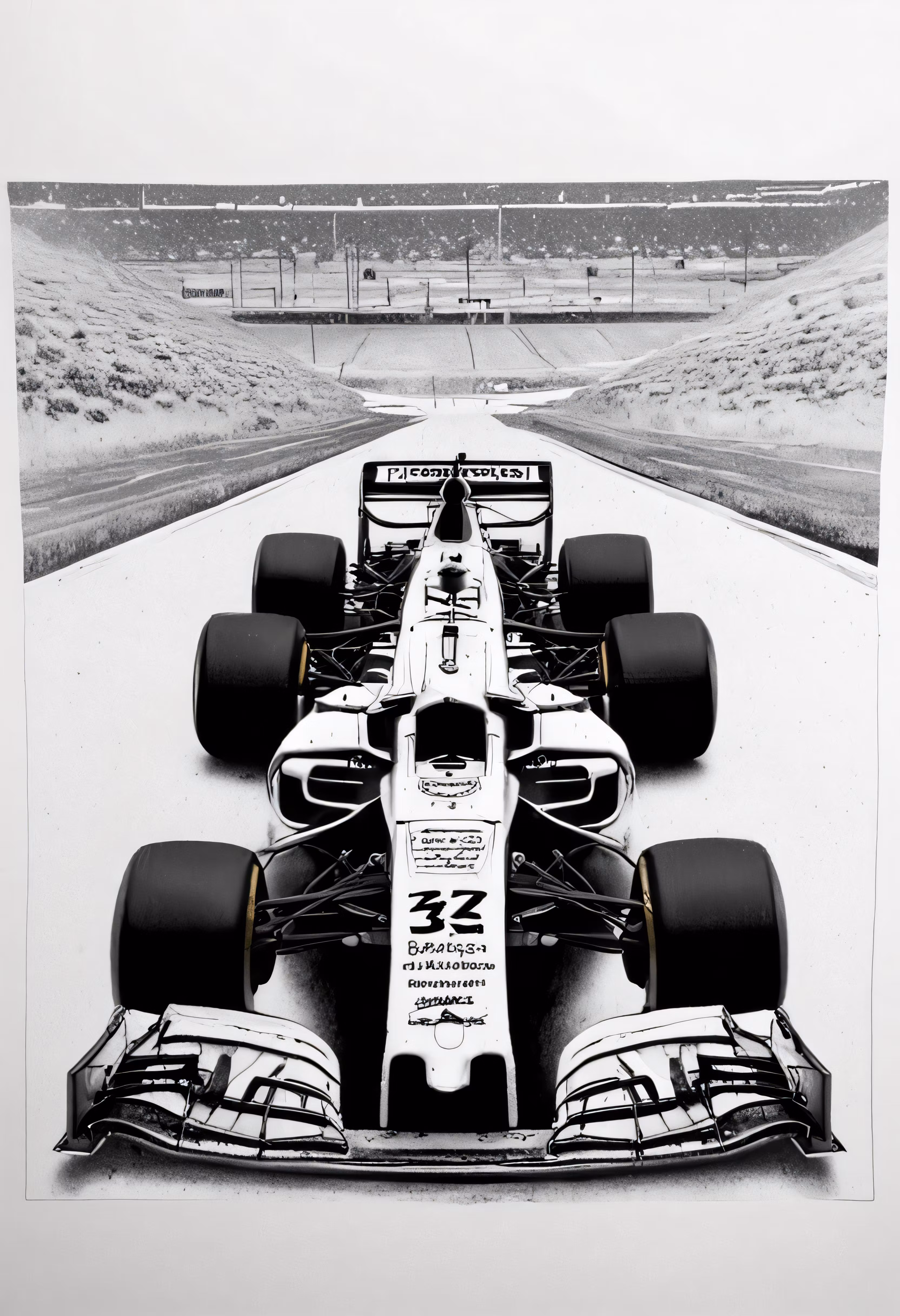 High resolution picture, free to use, the official logo for the 50 /a black and white photograph of race cars driving on a track