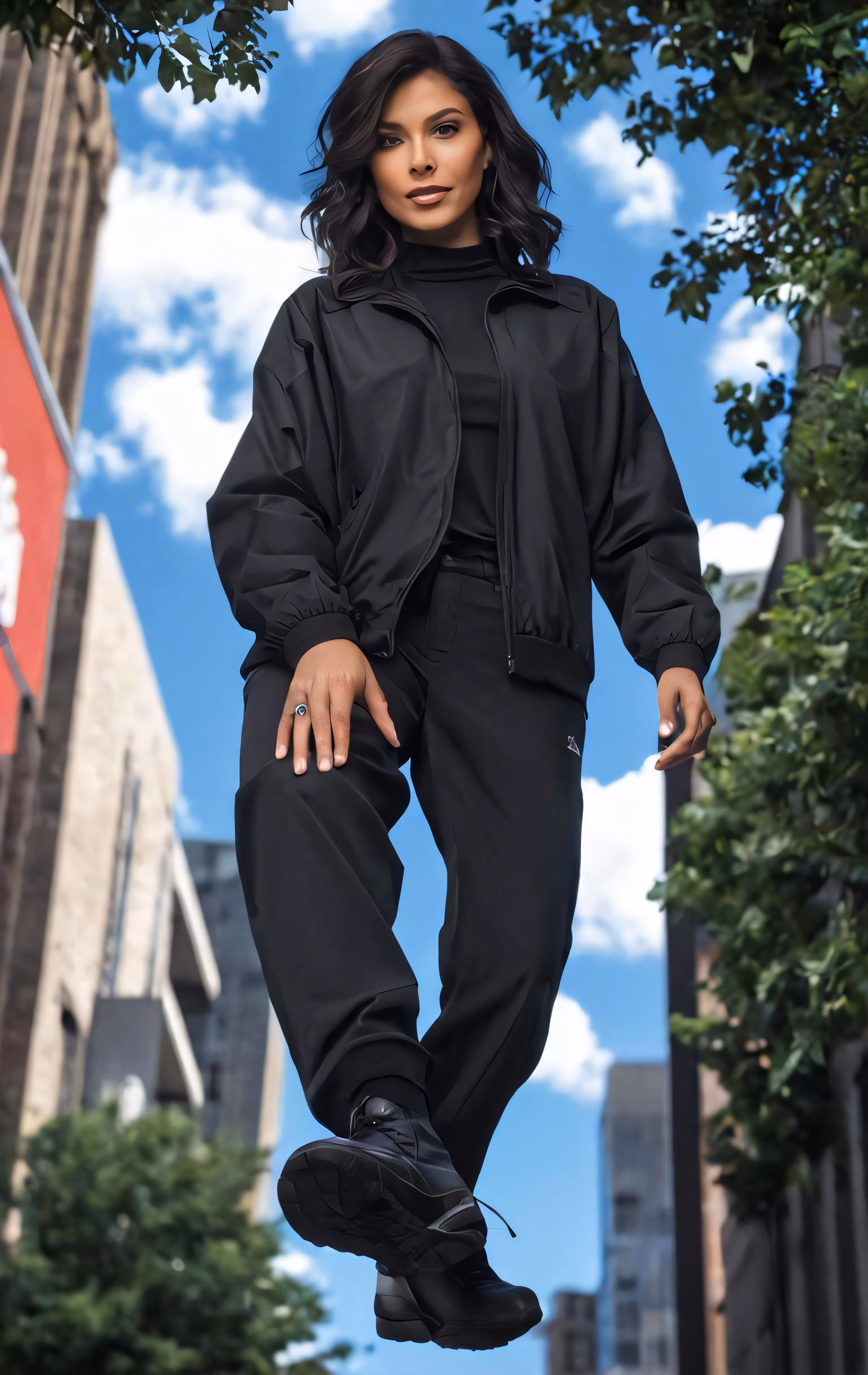 High resolution picture, free to use, the official logo for the 50 /a black woman in a hooded jacket is standing outdoors